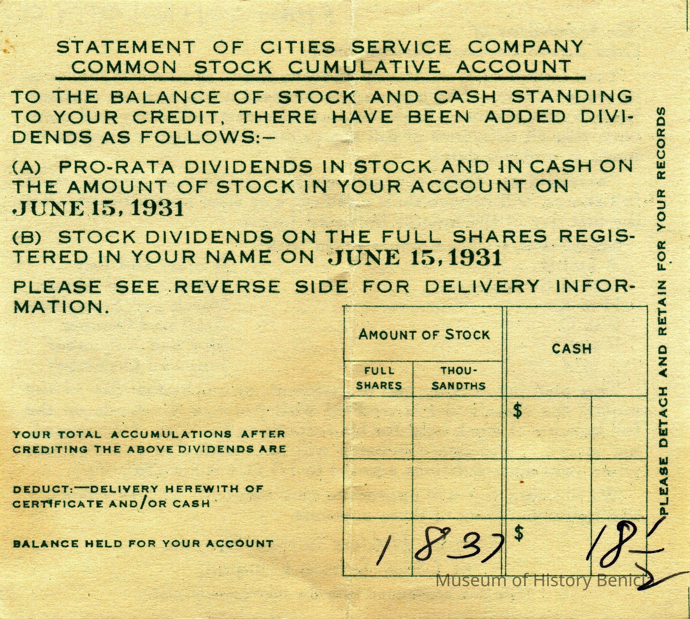 Some of the dividend cards are not dated. They simply refer to the date on the attached check.Collection