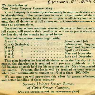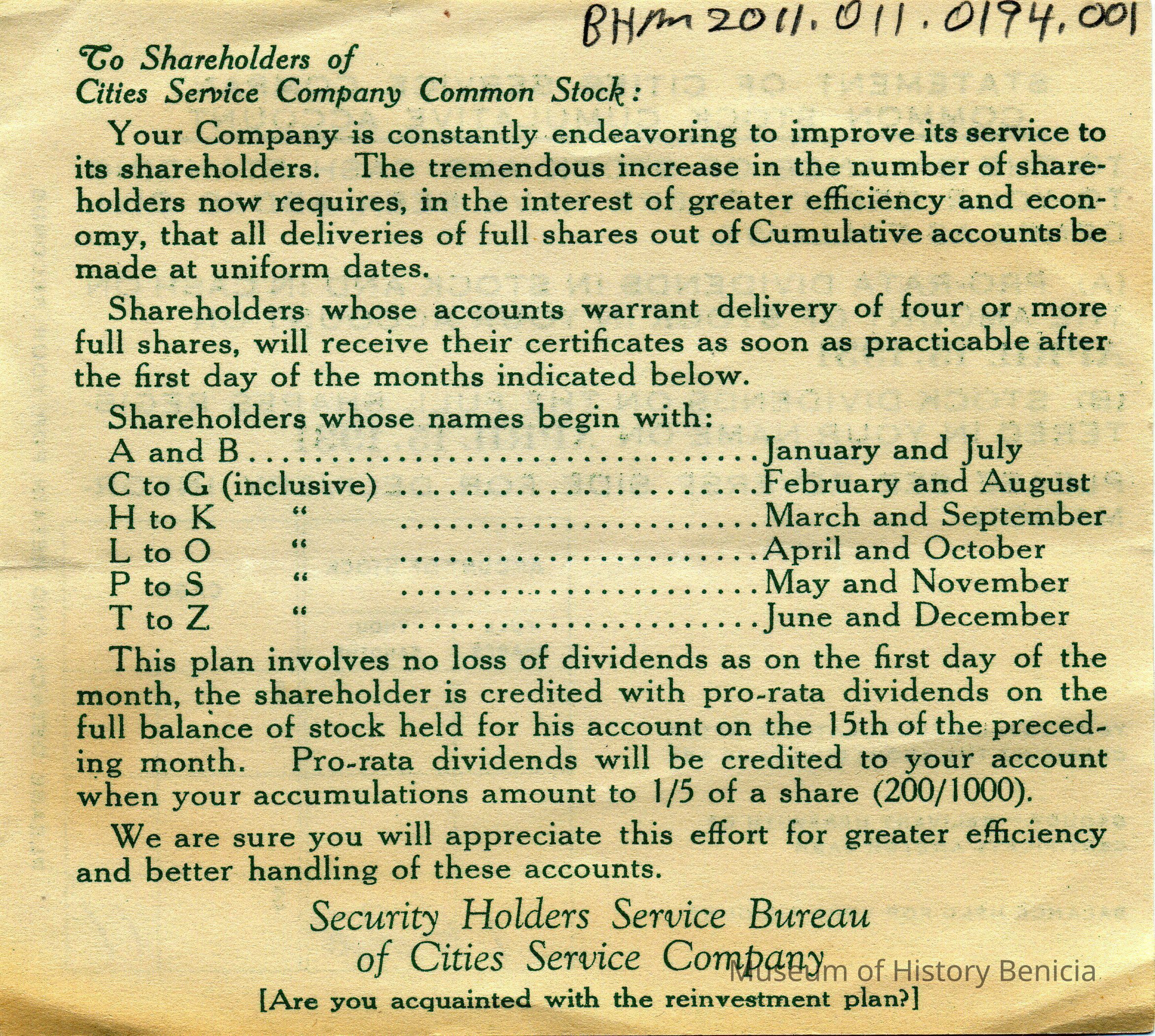 Some of the dividend cards are not dated. They simply refer to the date on the attached check.Collection