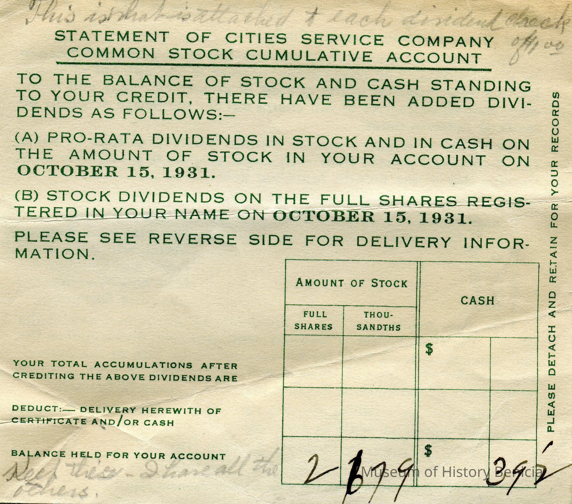 Some of the dividend cards are not dated. They simply refer to the date on the attached check.Collection