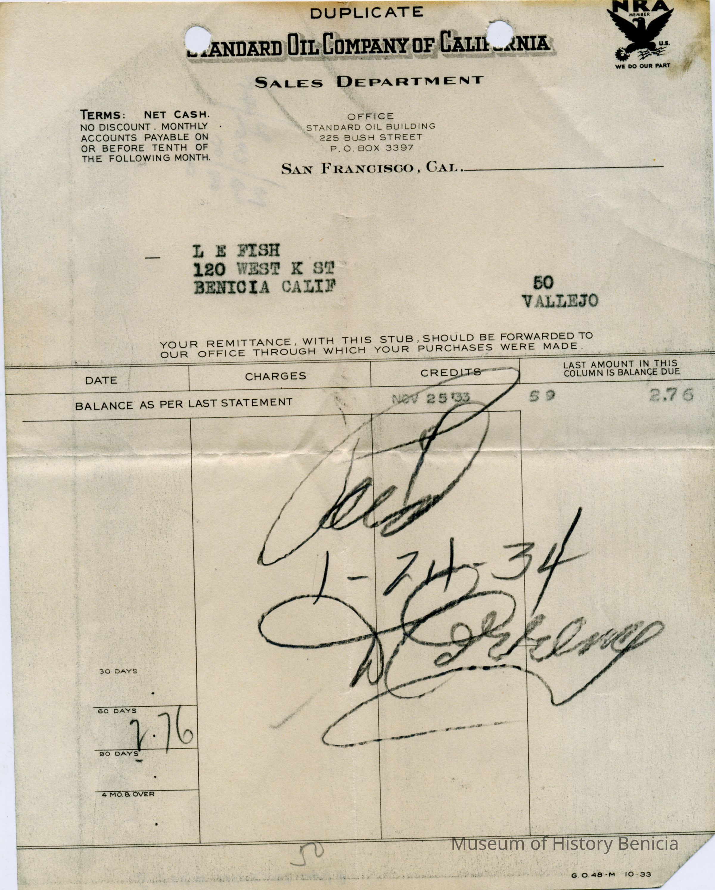 Also receipts of payment for oil dated 03/23/1934, 11/26/1932, 01/24/1934Collection