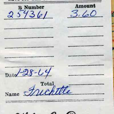 2009.3.12.4 - Yellow Recipt (same as previous) Date 1-30-65, Name N. Frechette, 133 East O,