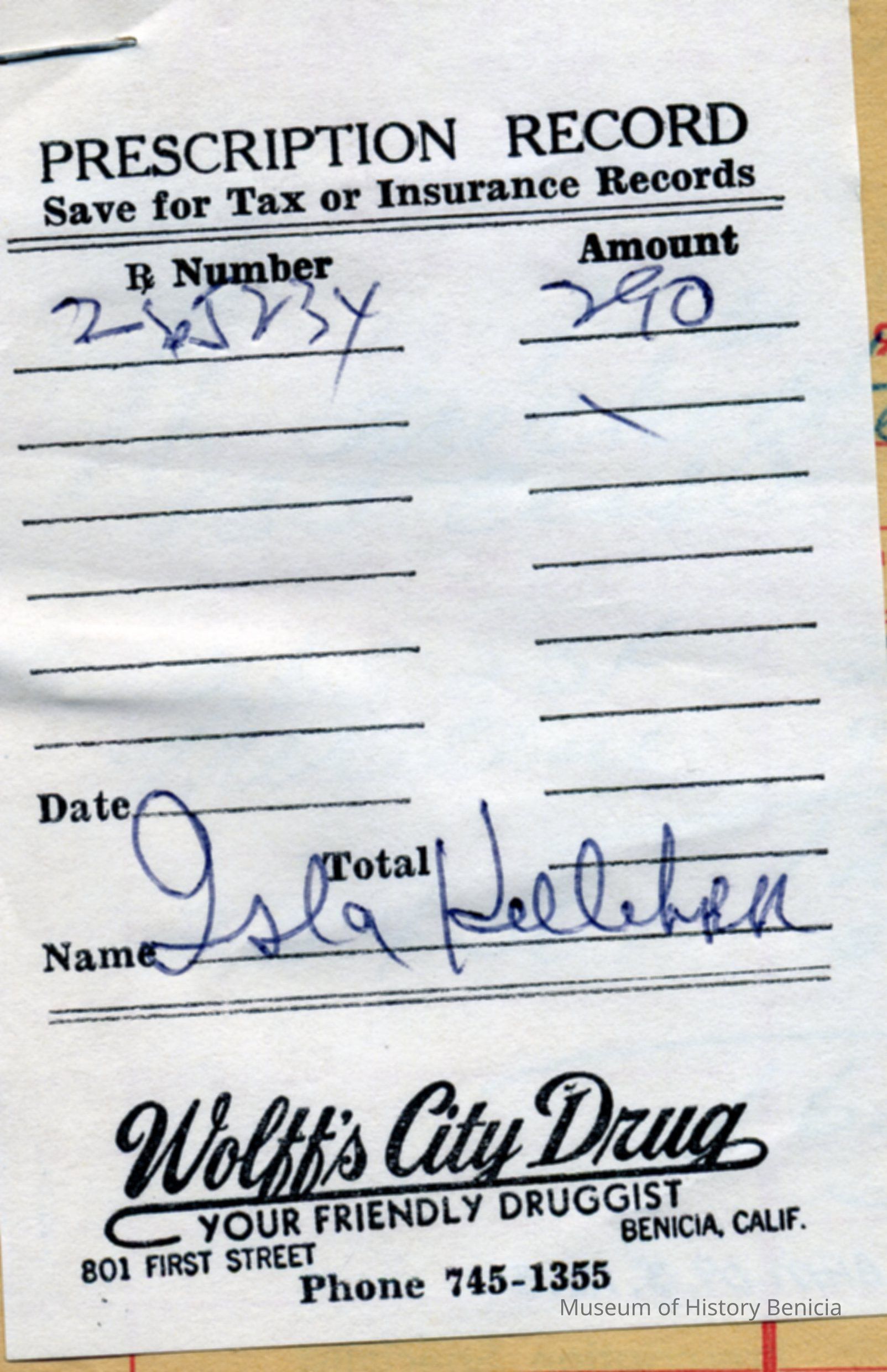 Isla Kelleher, imprint same as previous white receipt, (stapled to next item)
