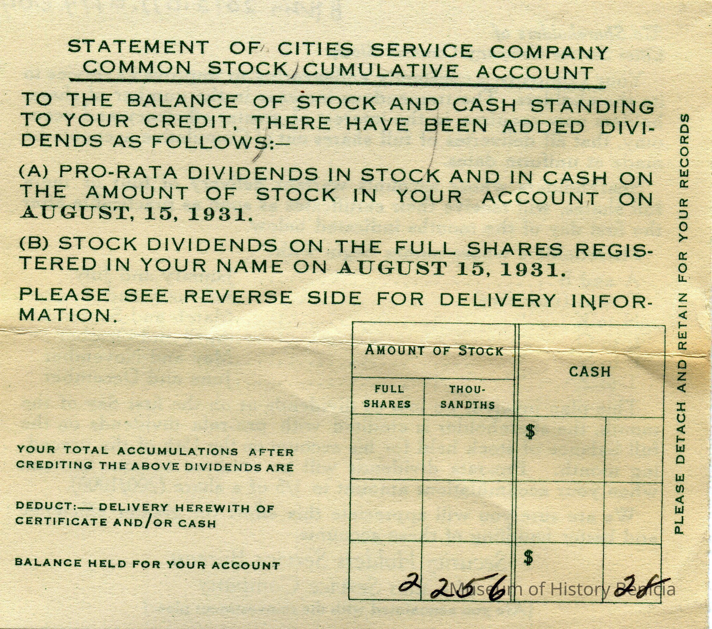 Some of the dividend cards are not dated. They simply refer to the date on the attached check.Collection