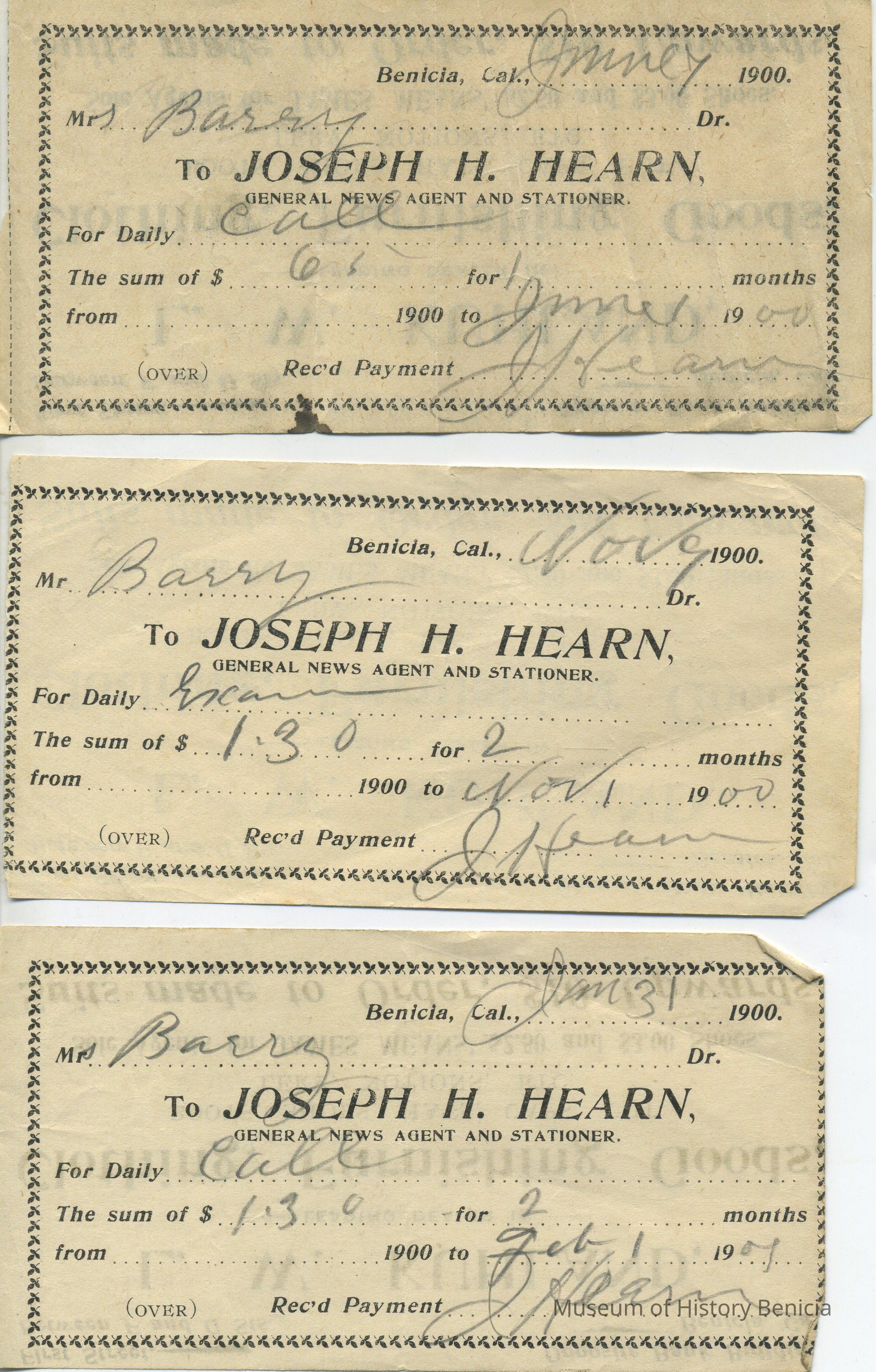 Receipts - Three 2-1/2" x 5" newspaper payment receipts: