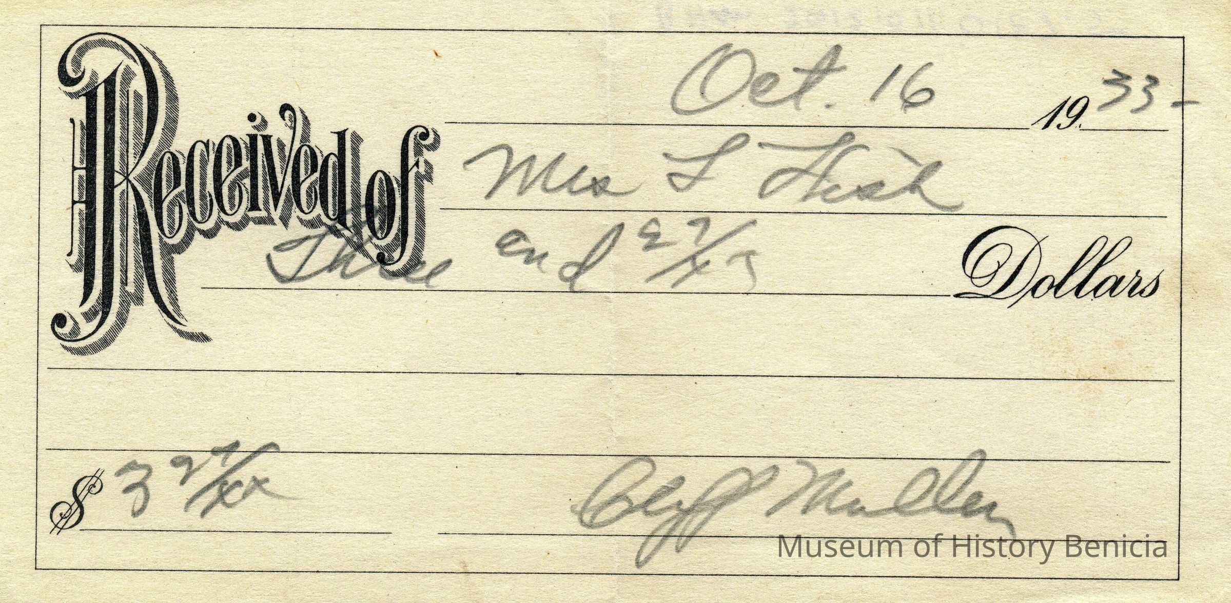 Receipts for Mr & Mrs L.E. Fish from various business/individuals. Sometimes the name of the company is not shown. The receipts range from 1928 to 1933.Collection