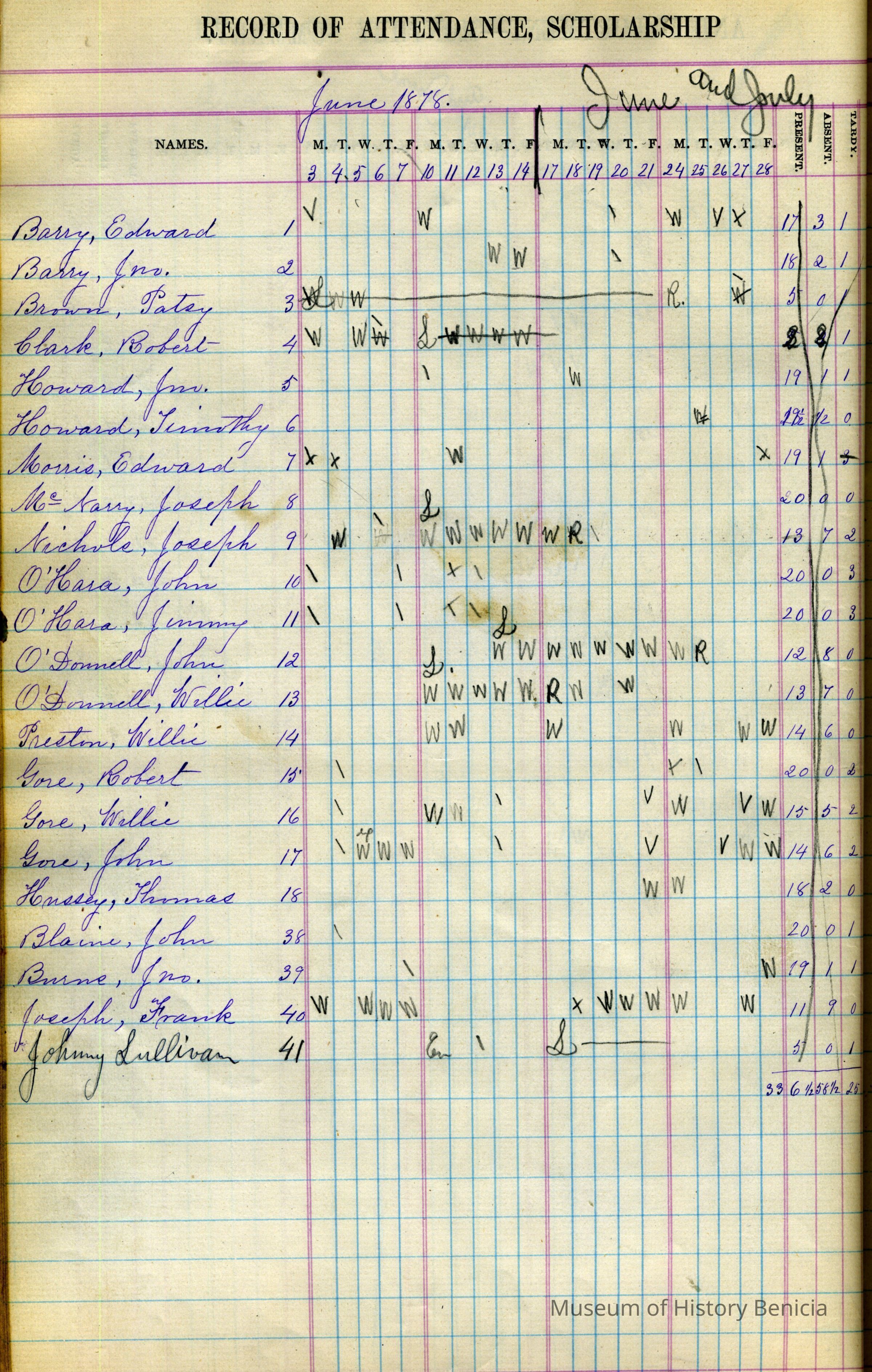 This is the register covering a period from 04/02/1877 to 09/27/1878. The teacher was not listed nor the student ages / grades. There is one half sheet in the back of this book for Louis Gomo.Collection