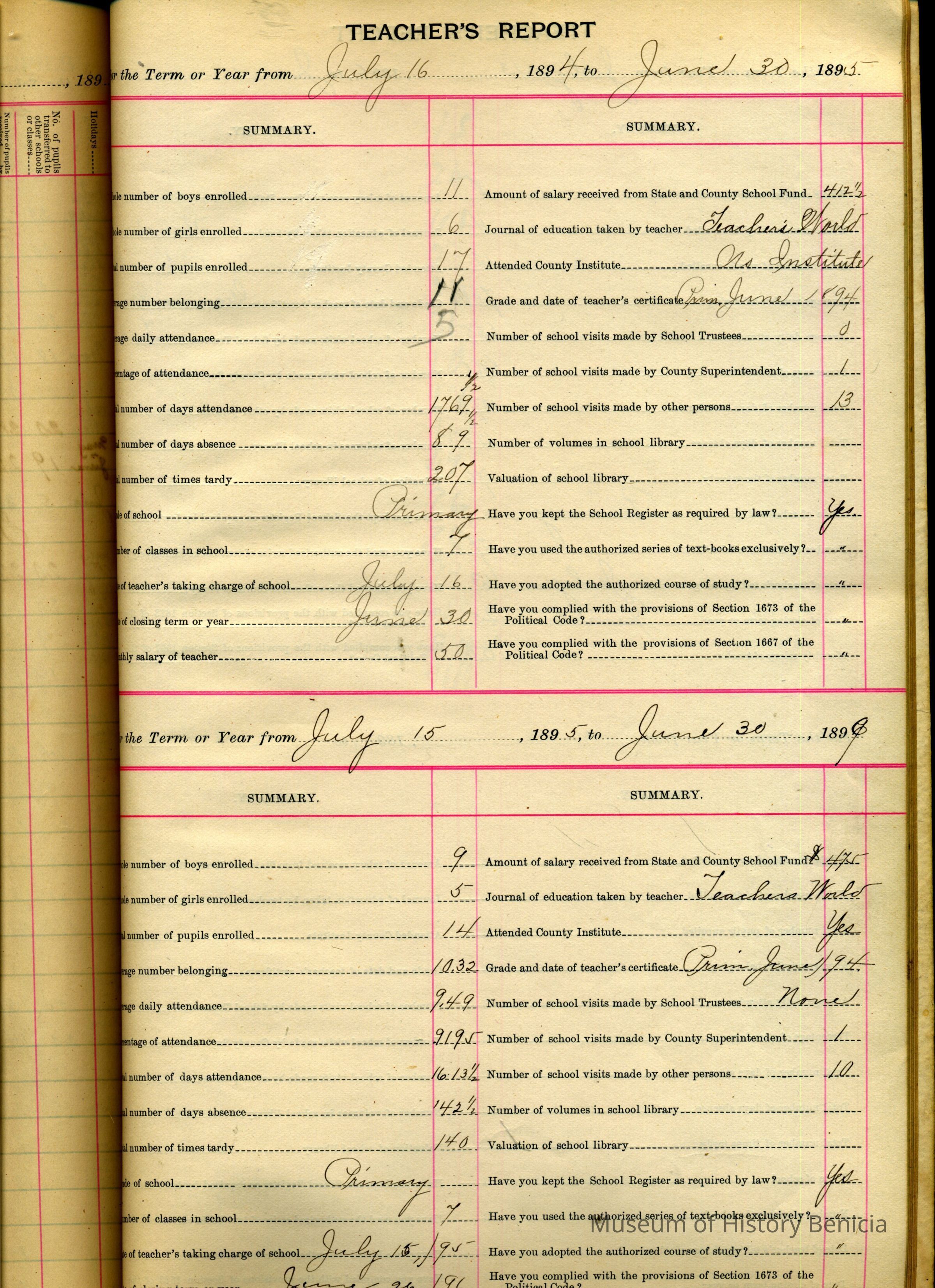 teacher's reports
