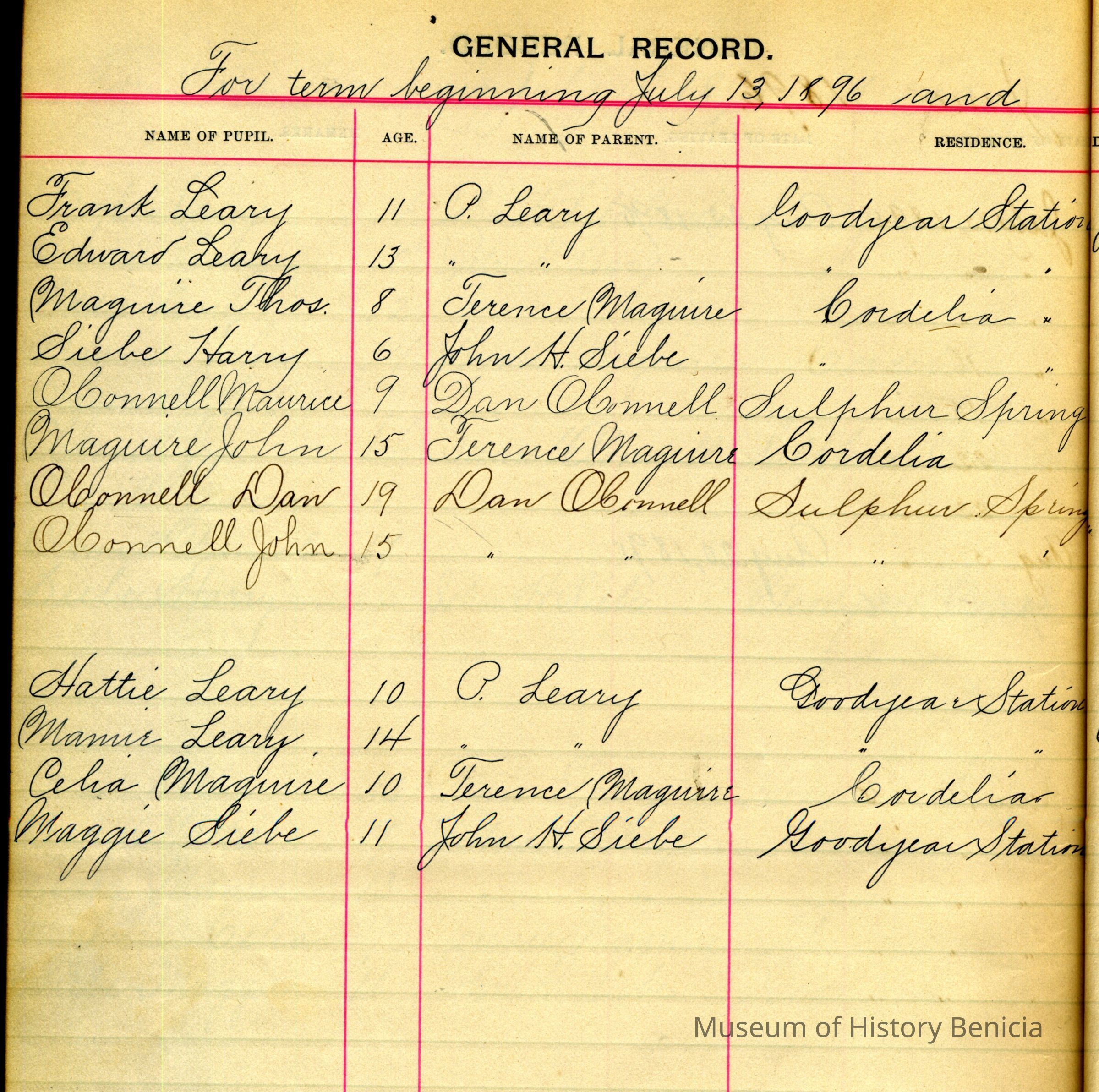 This is the register covering a period from 07/16/1897 to 06/25/1897. The teacher is Miss Ellen J. Foley. The school is the Siebe / Goodyear school.Collection