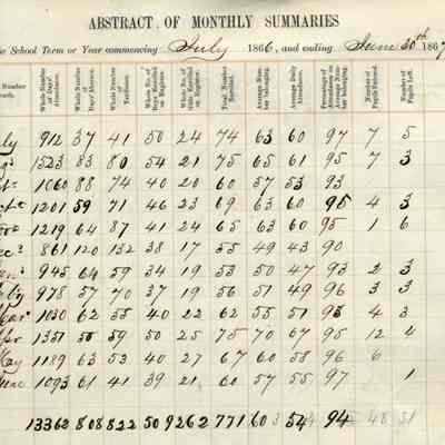 This is the first register covering a period from 07/02/1866 to 11/15/1867. The teacher was A.W. Peck who was teaching grades 1, 2, 3 and mixed grades.Collection