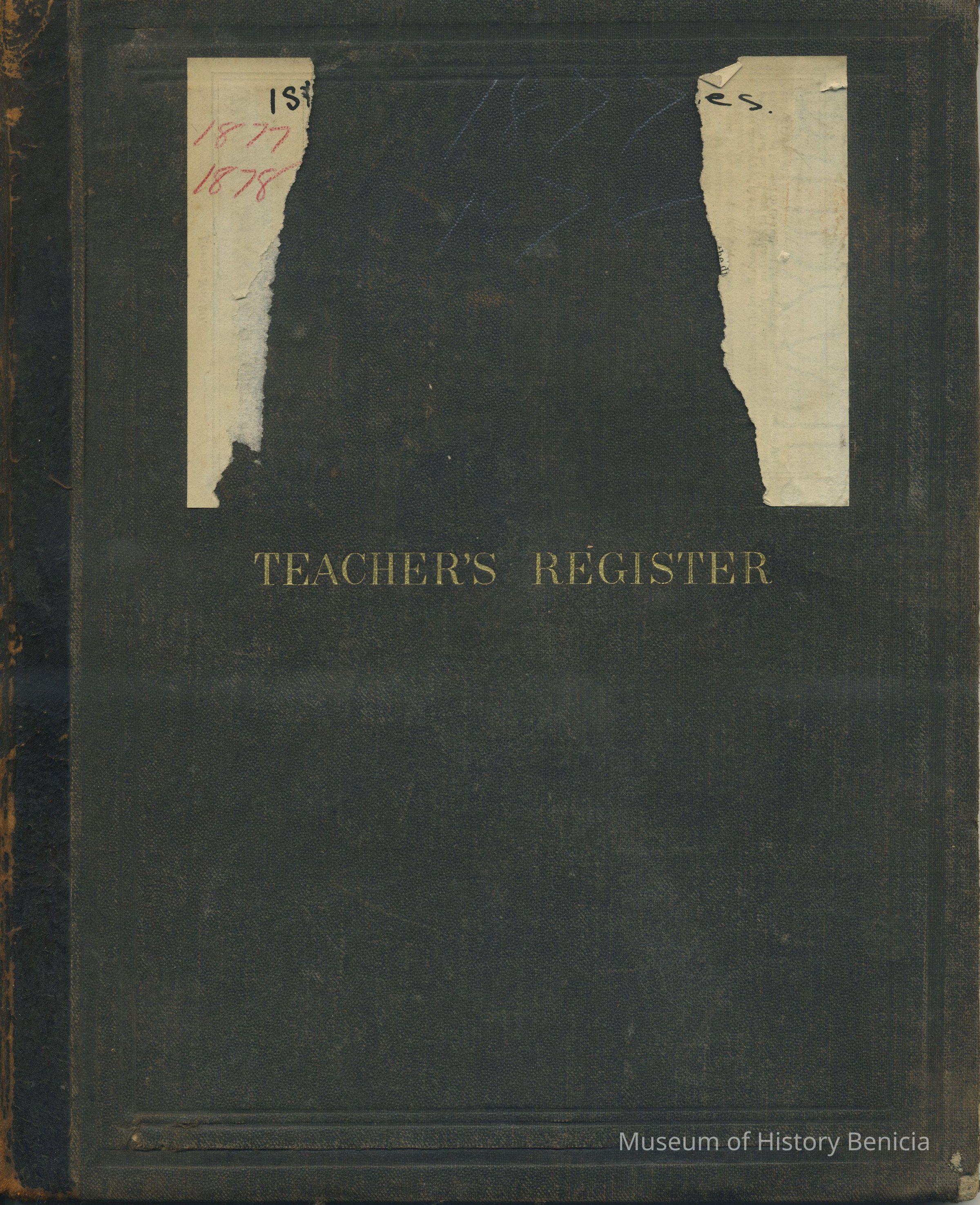 Teacher's Register 1877-78 (7-1/2" x 9-1/4" x 1/4") Dark gray cover with gold lettering: "Teacher's Register".