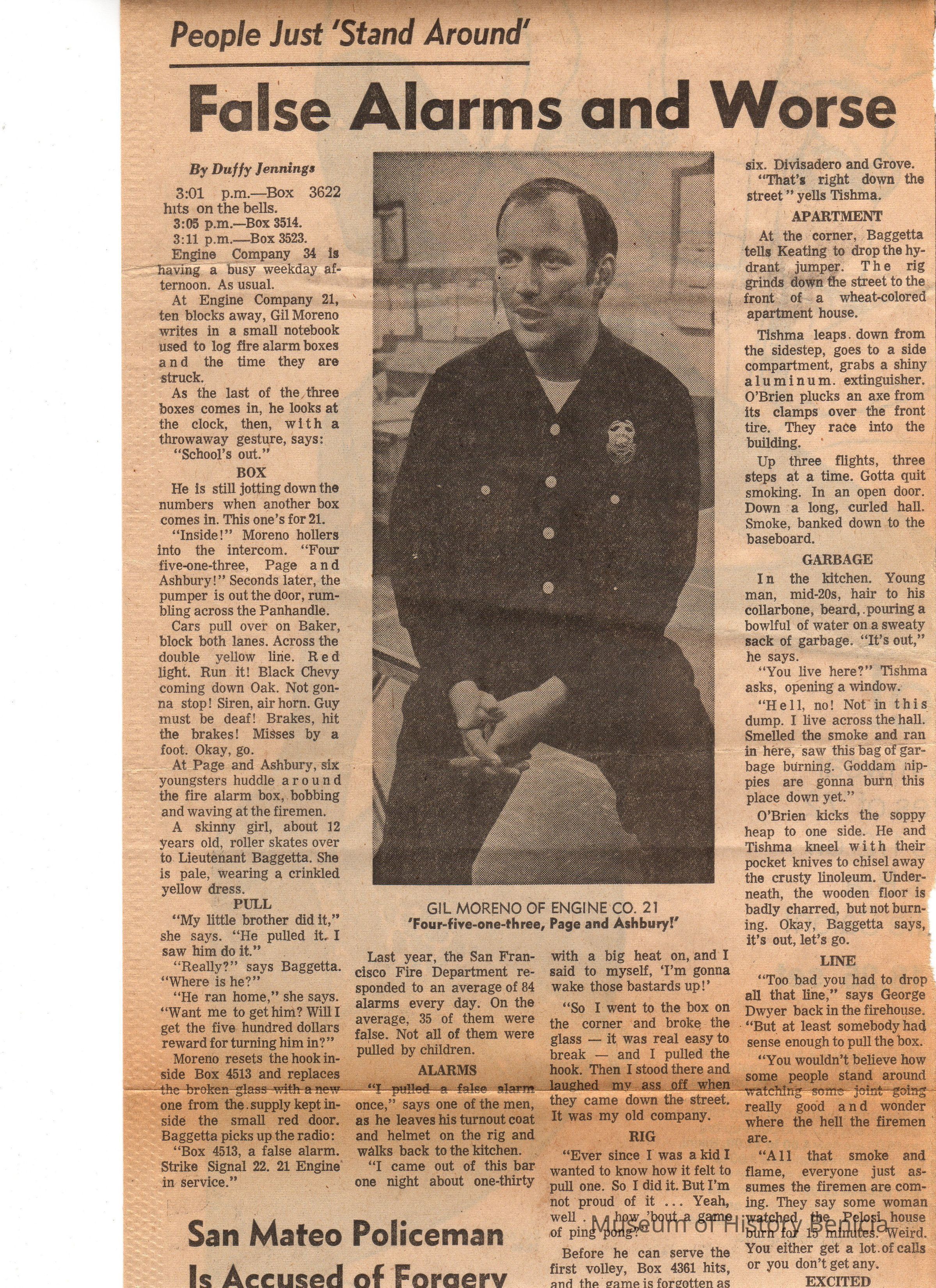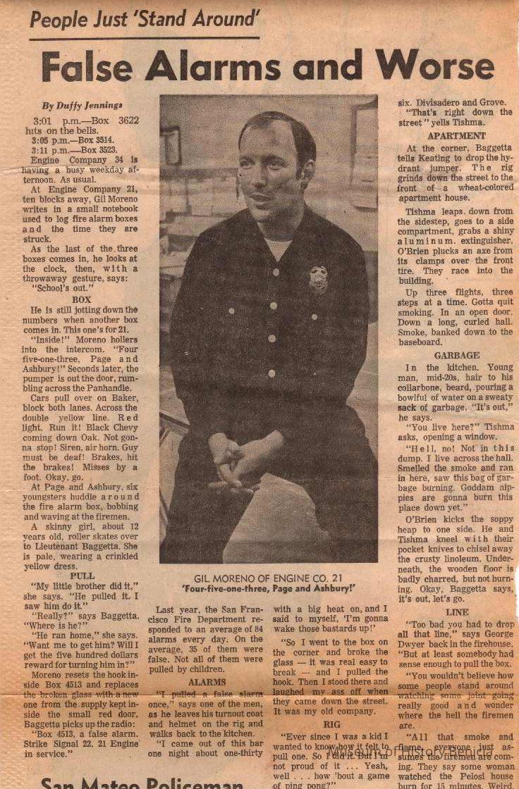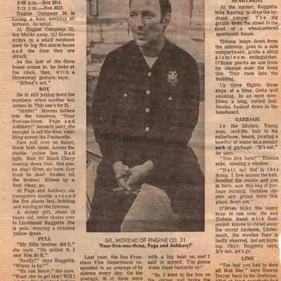 includes a photograph of Gil Moreno of Engine Co. 21