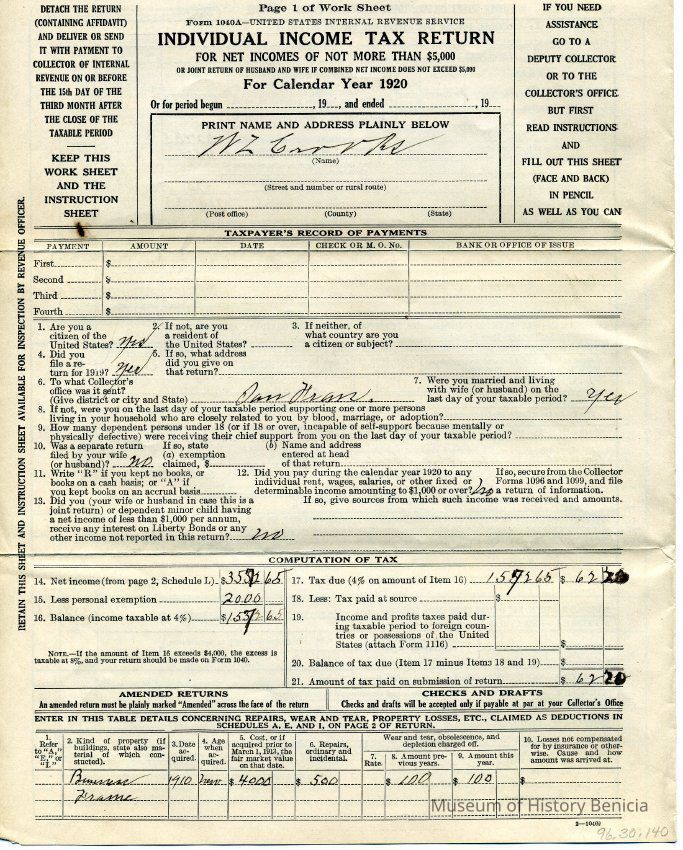 His taxable income was $1572.65 and he paid $62.20 in taxes