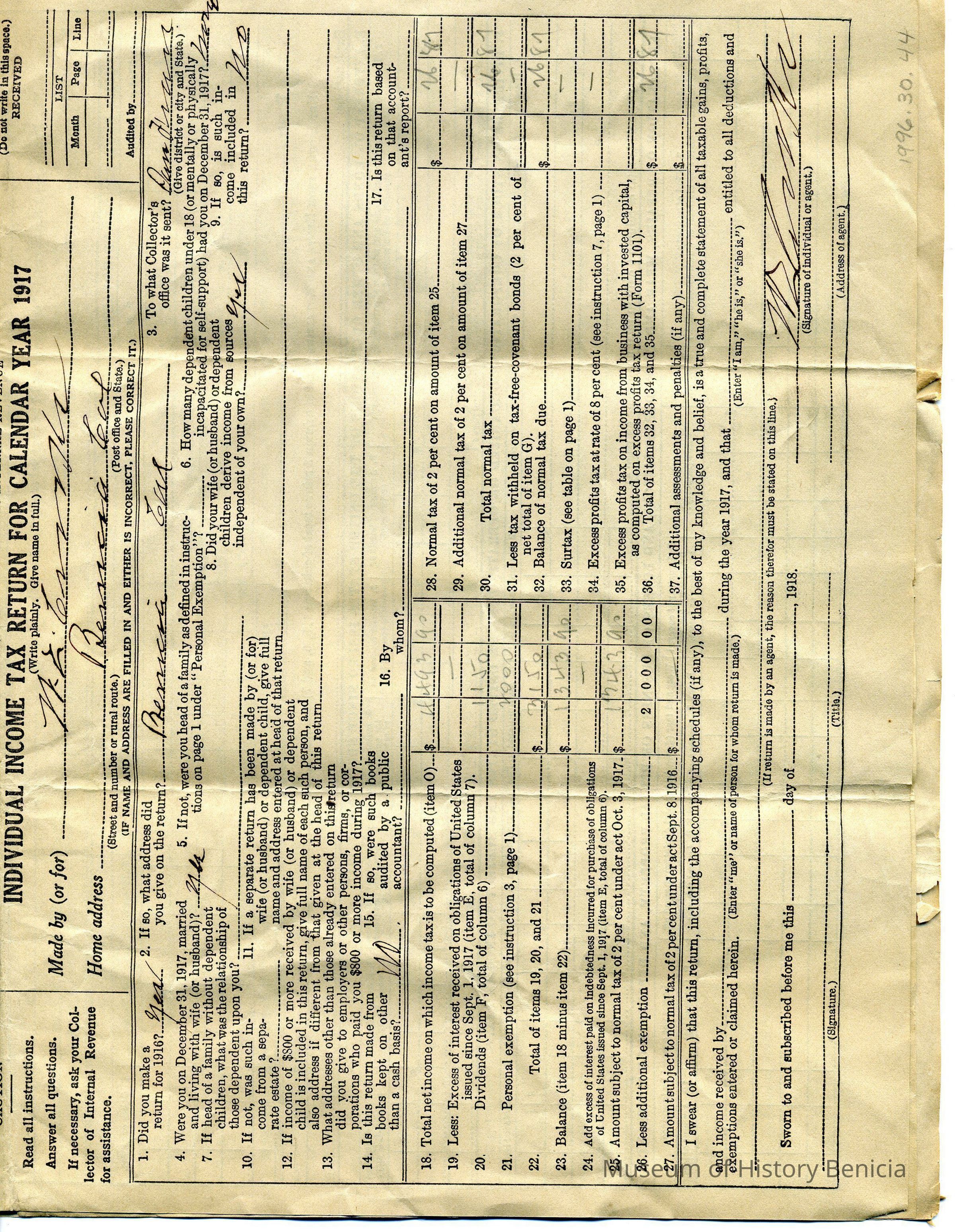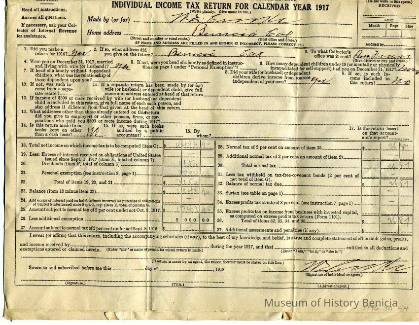 "Individual Income Tax Return for Calendar Year 1917"