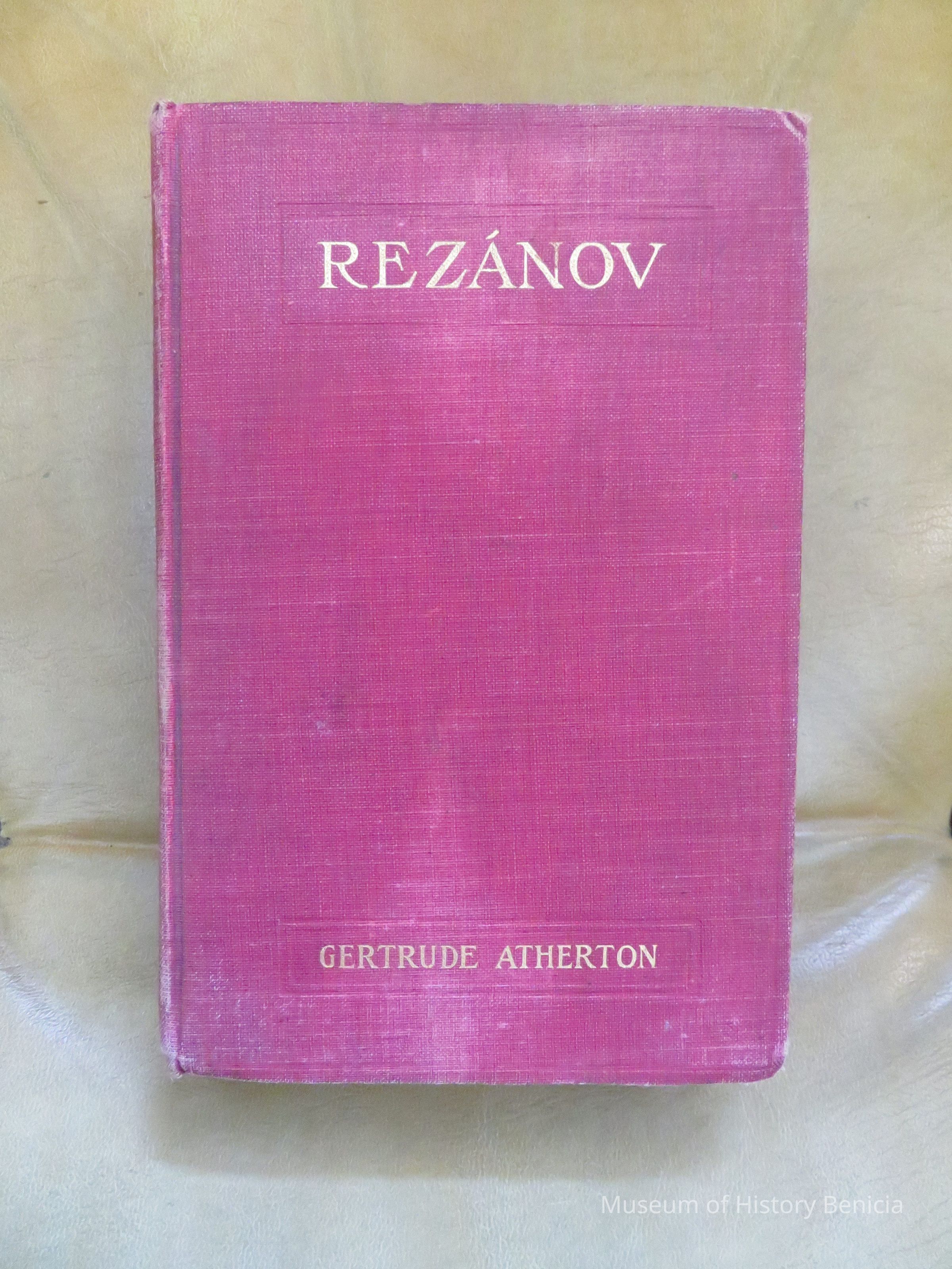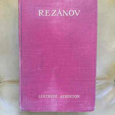 Rezanov, a book published by Gertrude Atherton in 1906. It is the story of Nikolai Rezanov, the chamberlain who came to S. F. at the Spanish Presidio in 1806. He met Concepcion Arguello, the daughter of the commanding officer and later asked for her hand in marriage. Unfortunately, he died on a trip through Siberia. The book is considered rare.Collection
