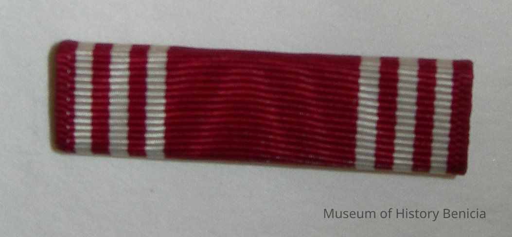 Military ribbon, worn on uniform breast; pin back, Good Conduct (instituted 1941) Red with white stripes
