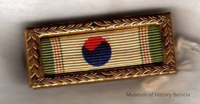 military ribbon in a brass "frame"