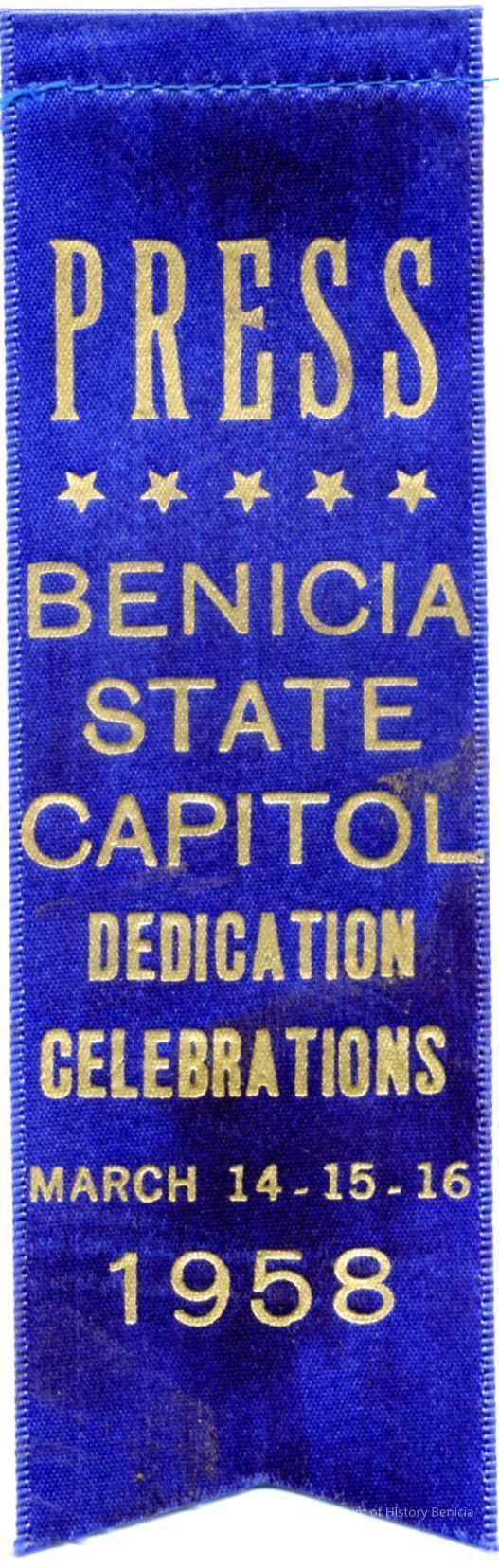 Ribbon from the 1958 Benicia State Capitol celebration. This one says it is for an "Press".