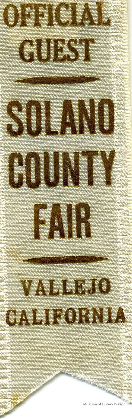 White silk 1-5/8" x 5-3/4" ribbon: Official Guest SOLANO COUNTY FAIR Vallejo California