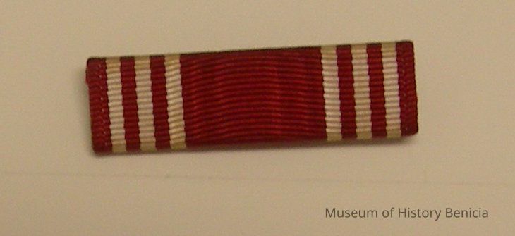 Ribbon - Commemorative - Good Conduct, pin-on Red with three white stripes on each side; 1-1/2" wide x 3/8" high