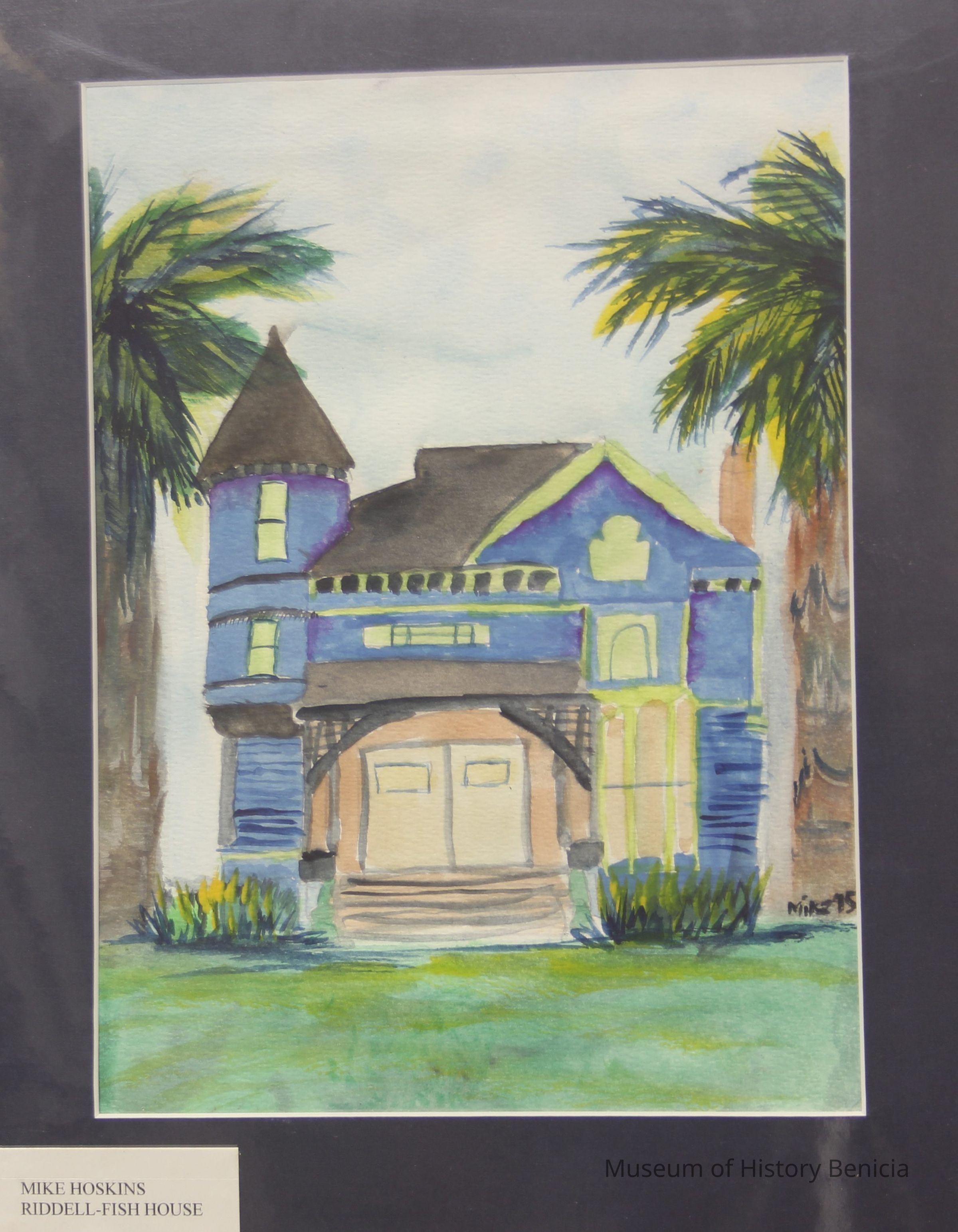 Watercolor painting of a Victorian House (Riddell-Fish House) done in 1995 by Mike Haskins, a Benicia Middle School student matted and mounted on foam coreCollection