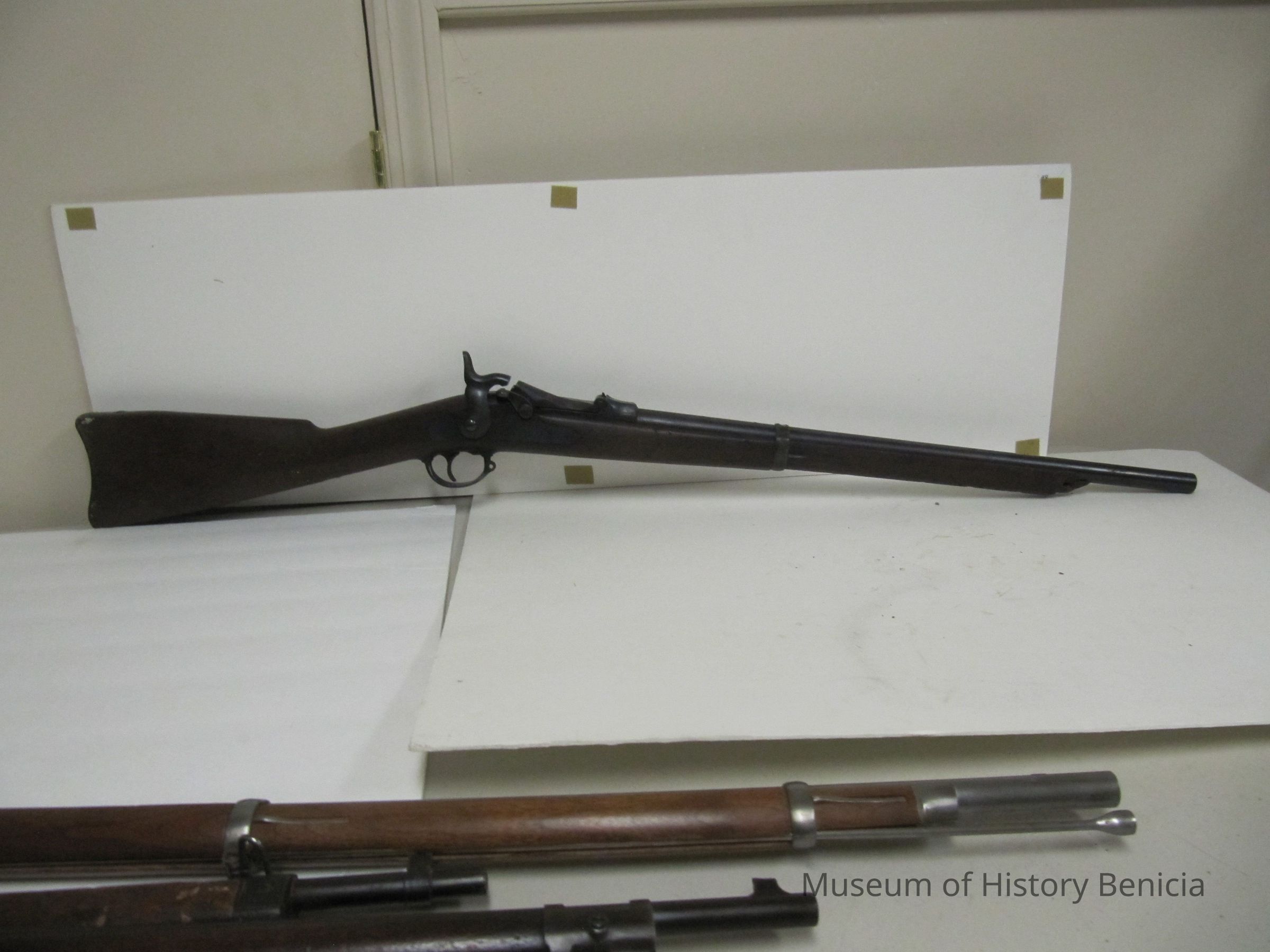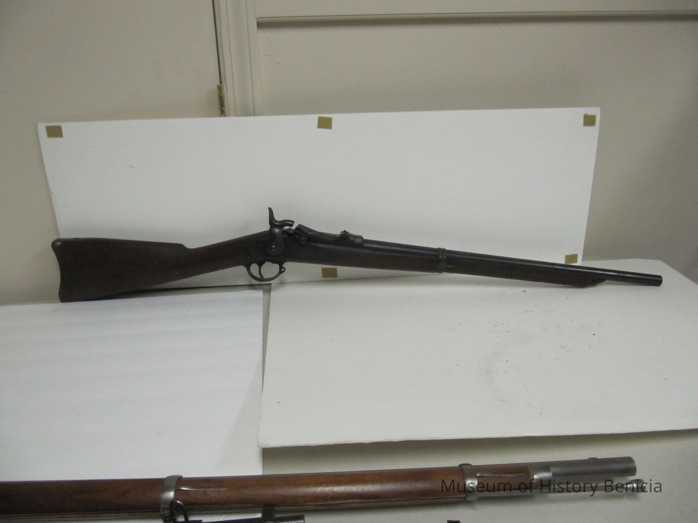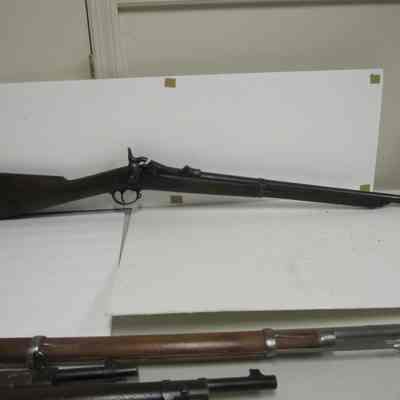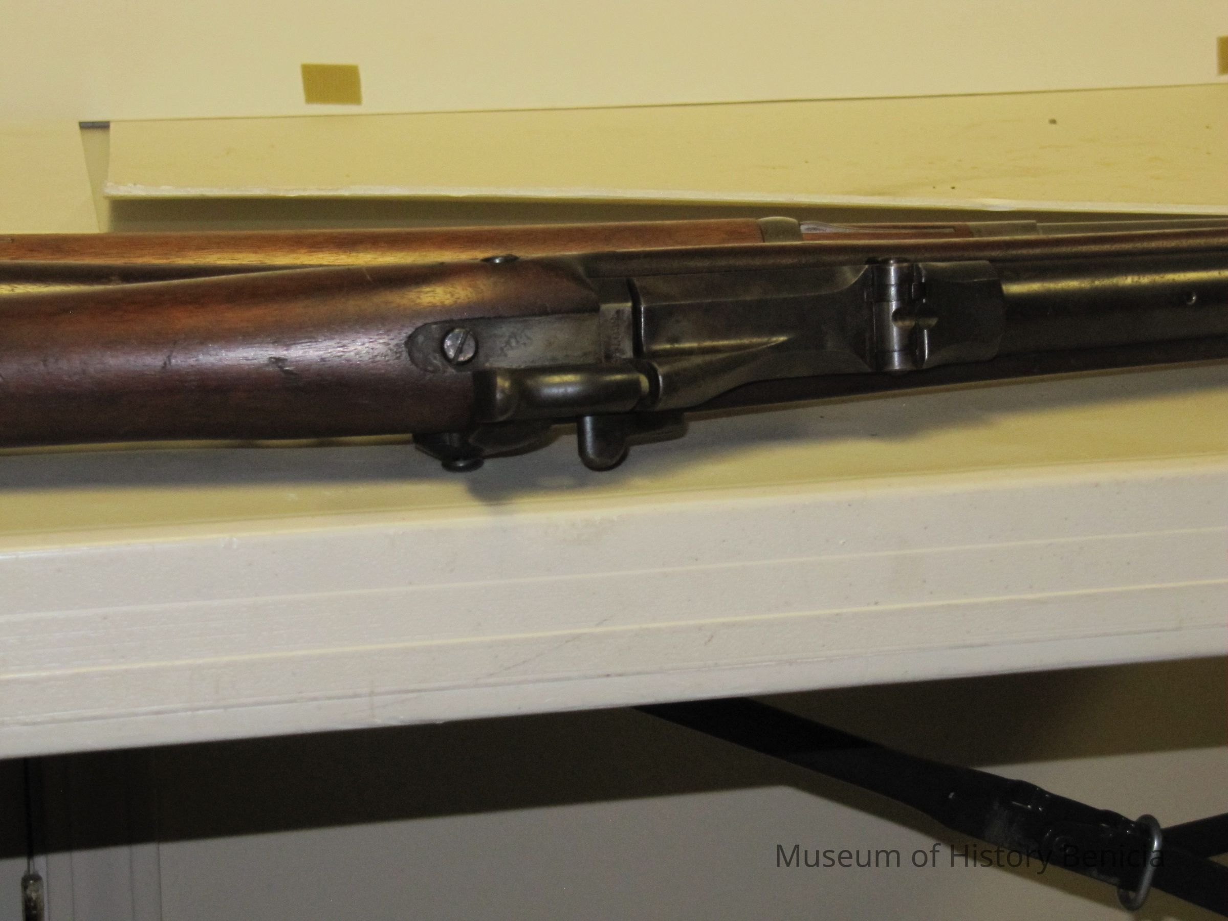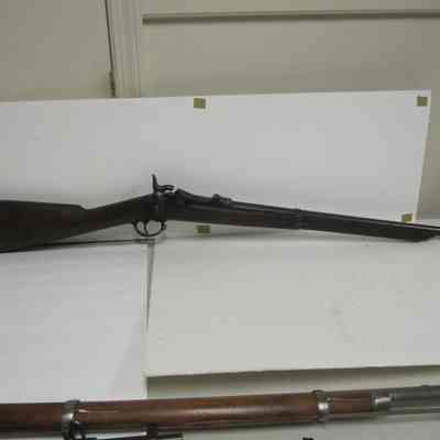 rifle with S/N 560749. This is a US Model 1884 Springfield rifle. The stock is chipped. There is a stamp on it the is either "SMP" or "SWP" and the year 1883.Collection