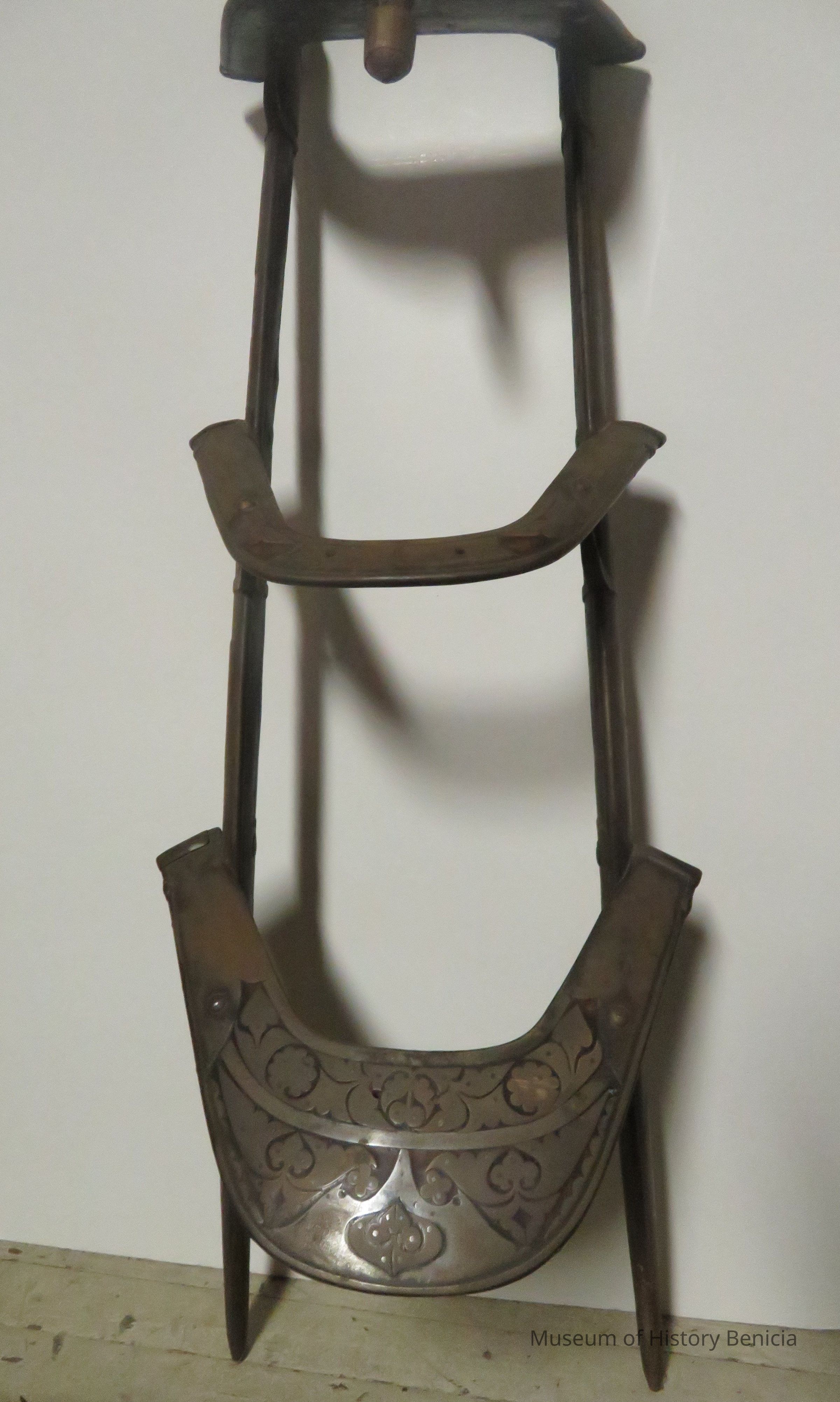 Camel saddle from India, origin: Rajonistan (spelling ?) with metal ornamentation - two seater item was received by Harry Wassmann on May 12, 2000