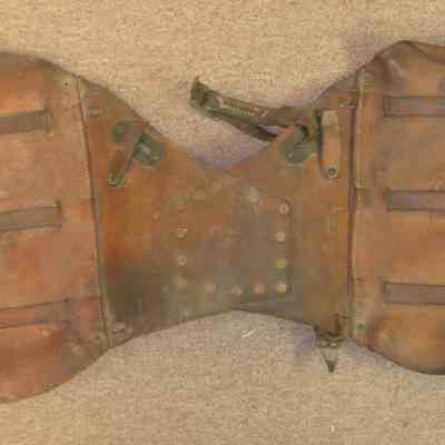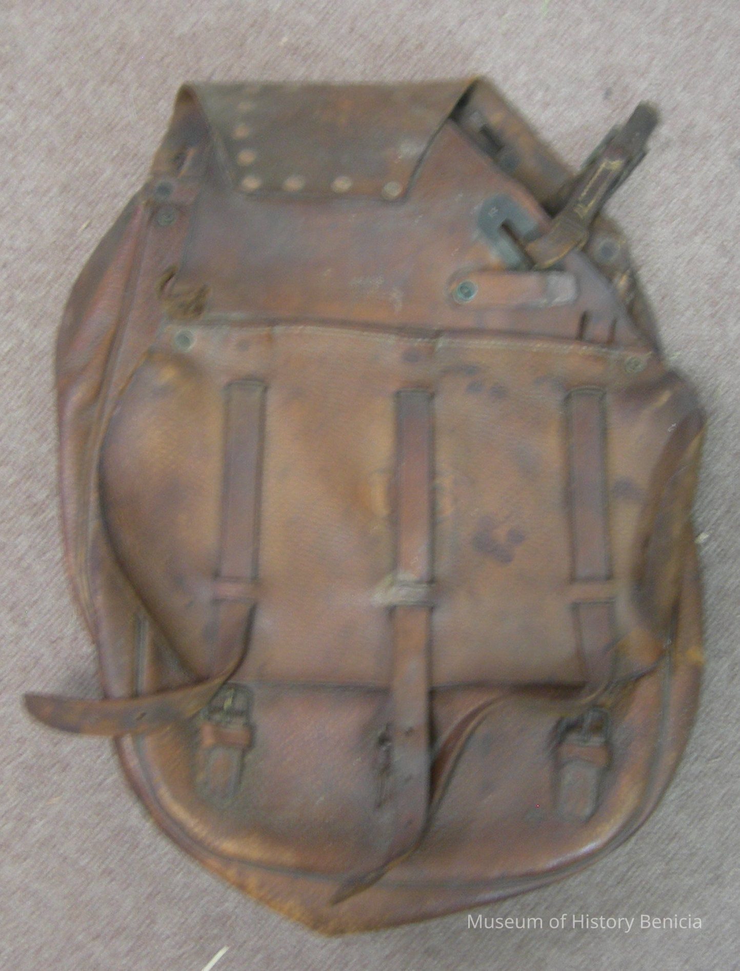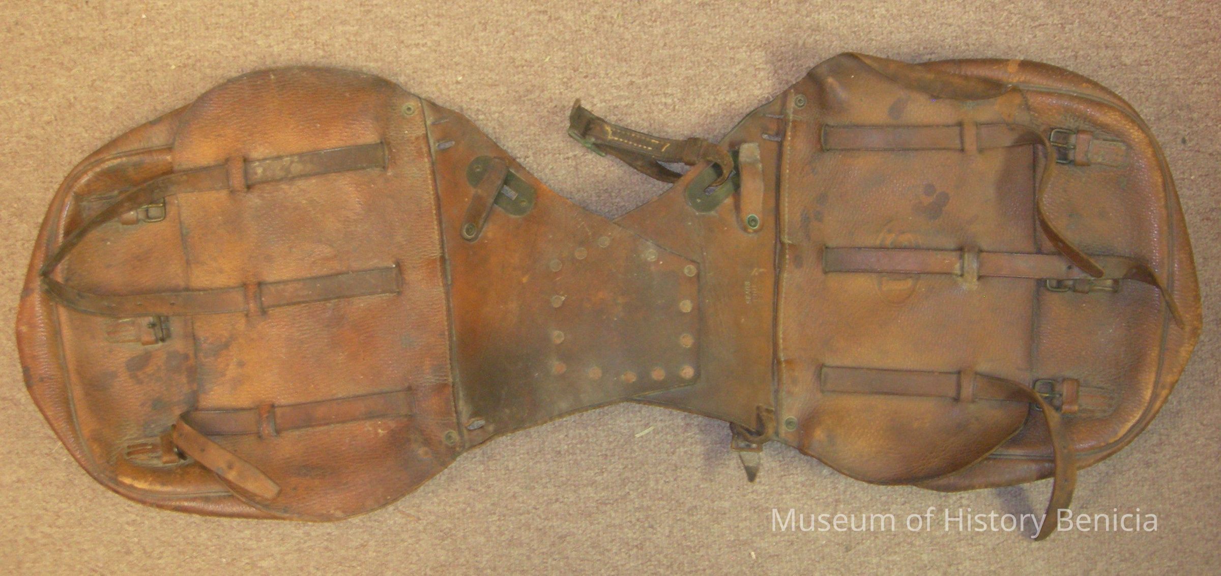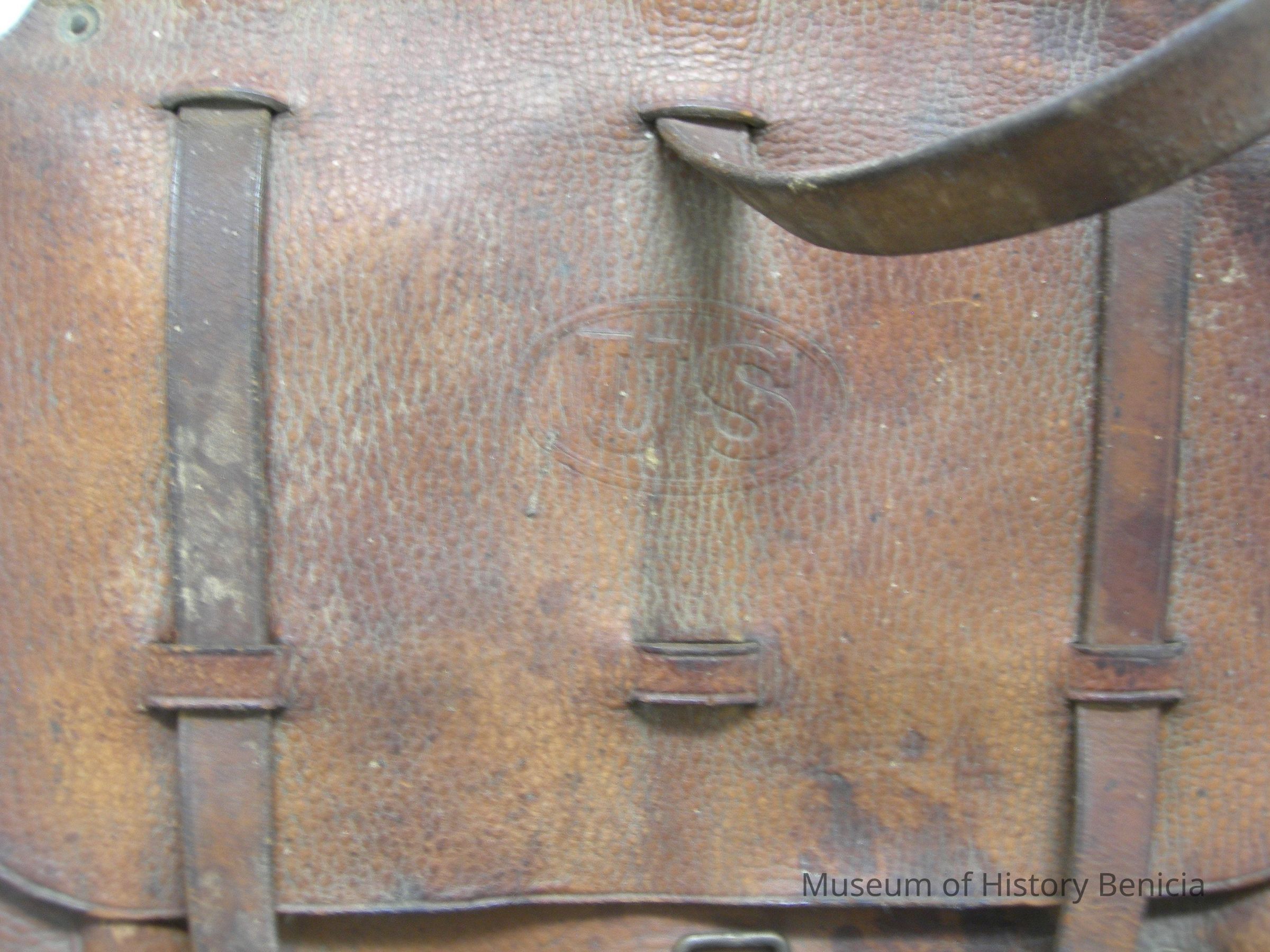 U.S. Saddlebag - leather with metal rivets and buckles;