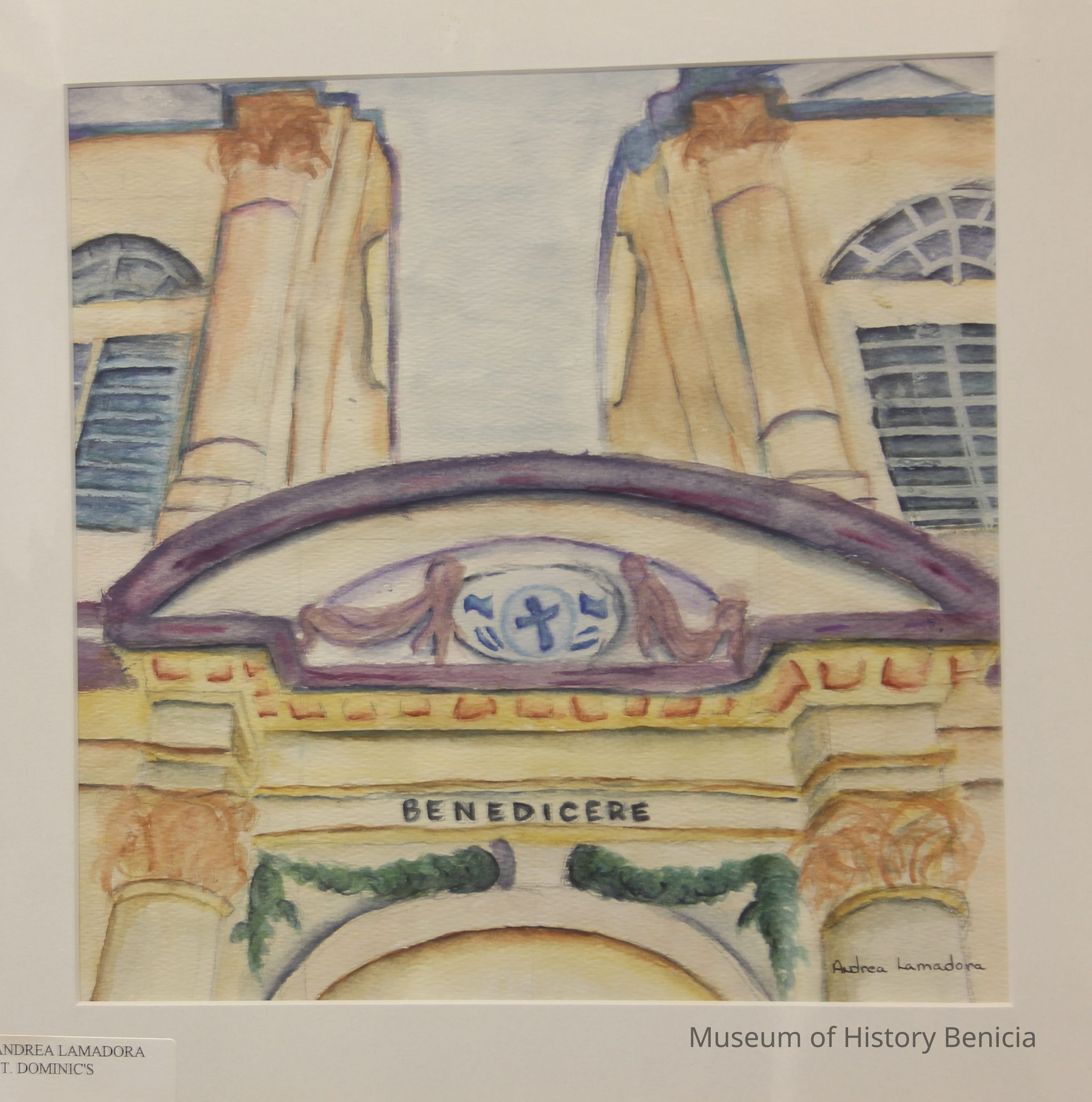 "Saint Dominic's Church" watercolor painting done by Andrea Lamadora in 1995, a Benicia Middle School student matted and mounted on foamcoreCollection