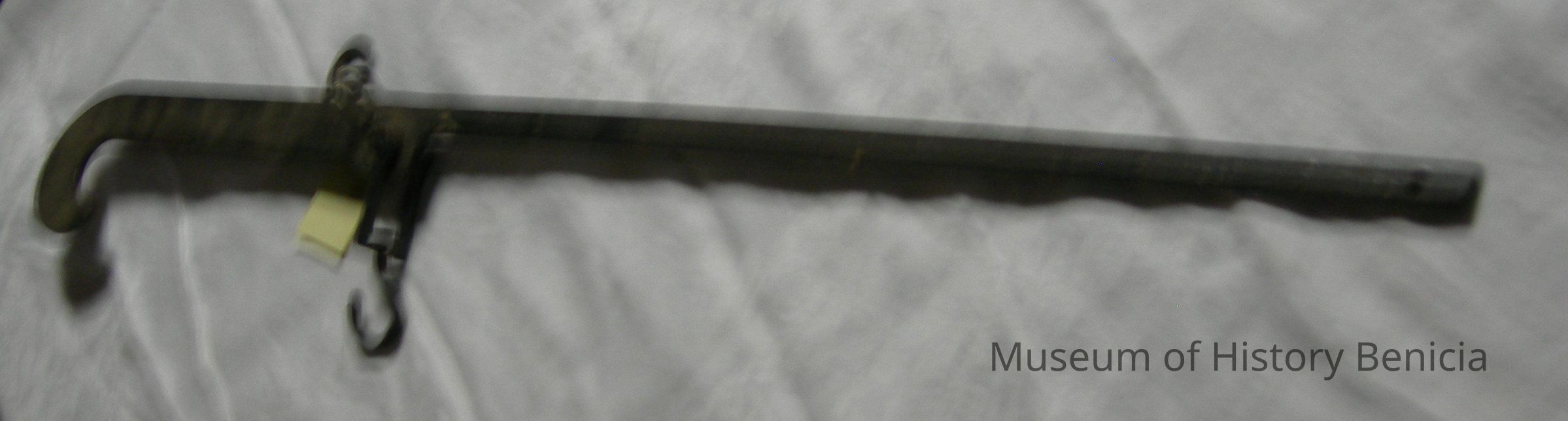 arm/lever from a hanging scale; also attached: hook to hang scale and hook on which to attach the weights painted black