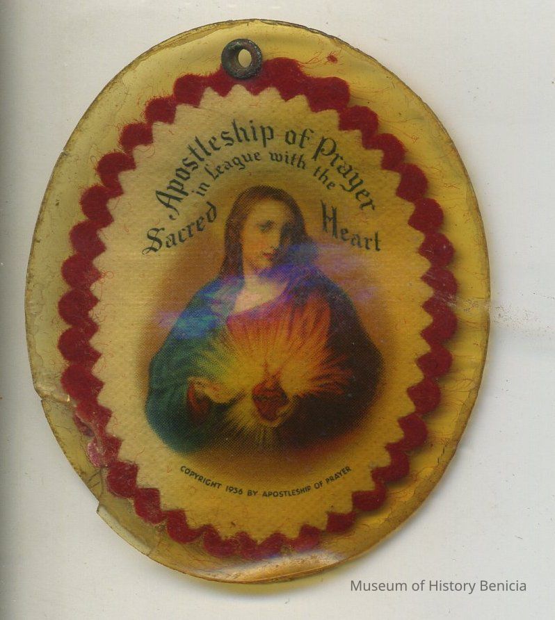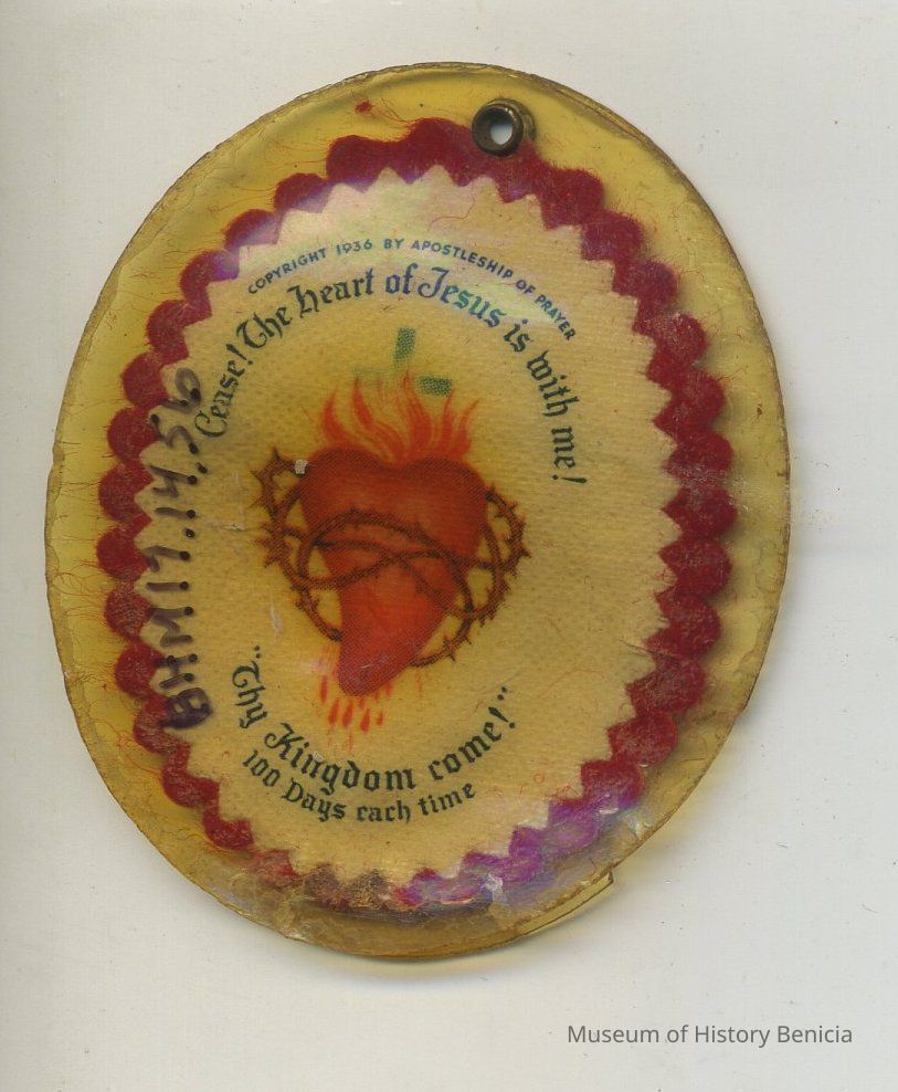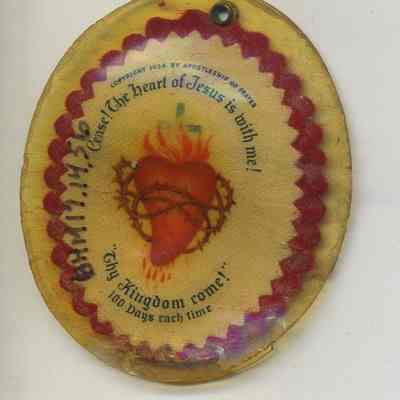 on other side: "Cease! The Heart of Jesus is with me!" "Thy Kingdom Come!"