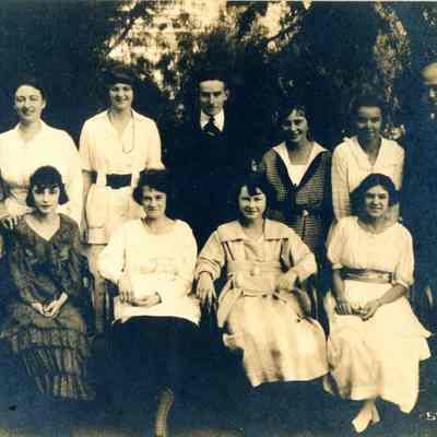 B/W Photograph: Benicia High School informal class photo - Richard Maurer is the only male graduate. He is the center rear. Circa 1921-22