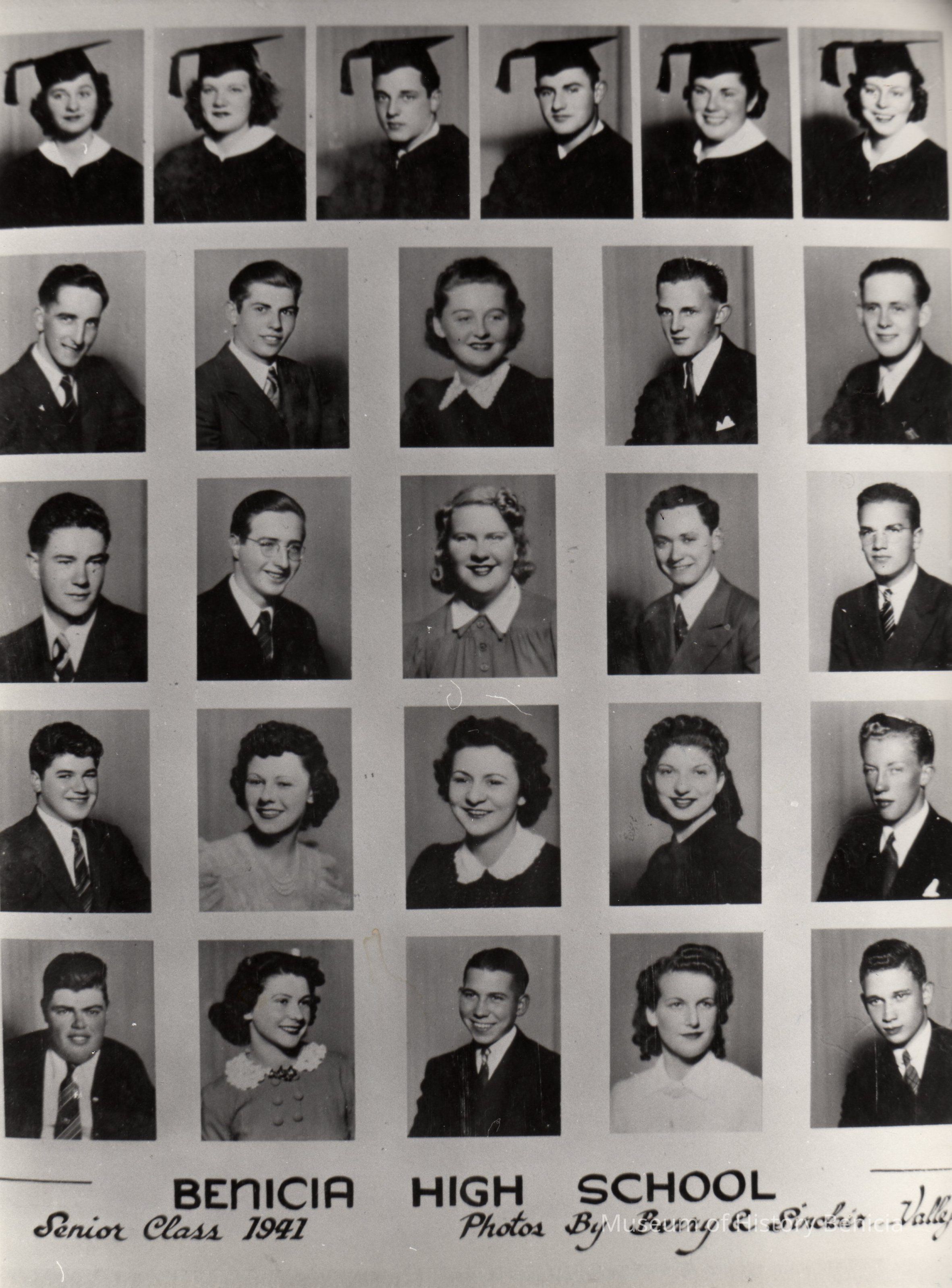 B/W Yearbook layout of 26 photographs of Benicia High School senior class of 1941.Collection