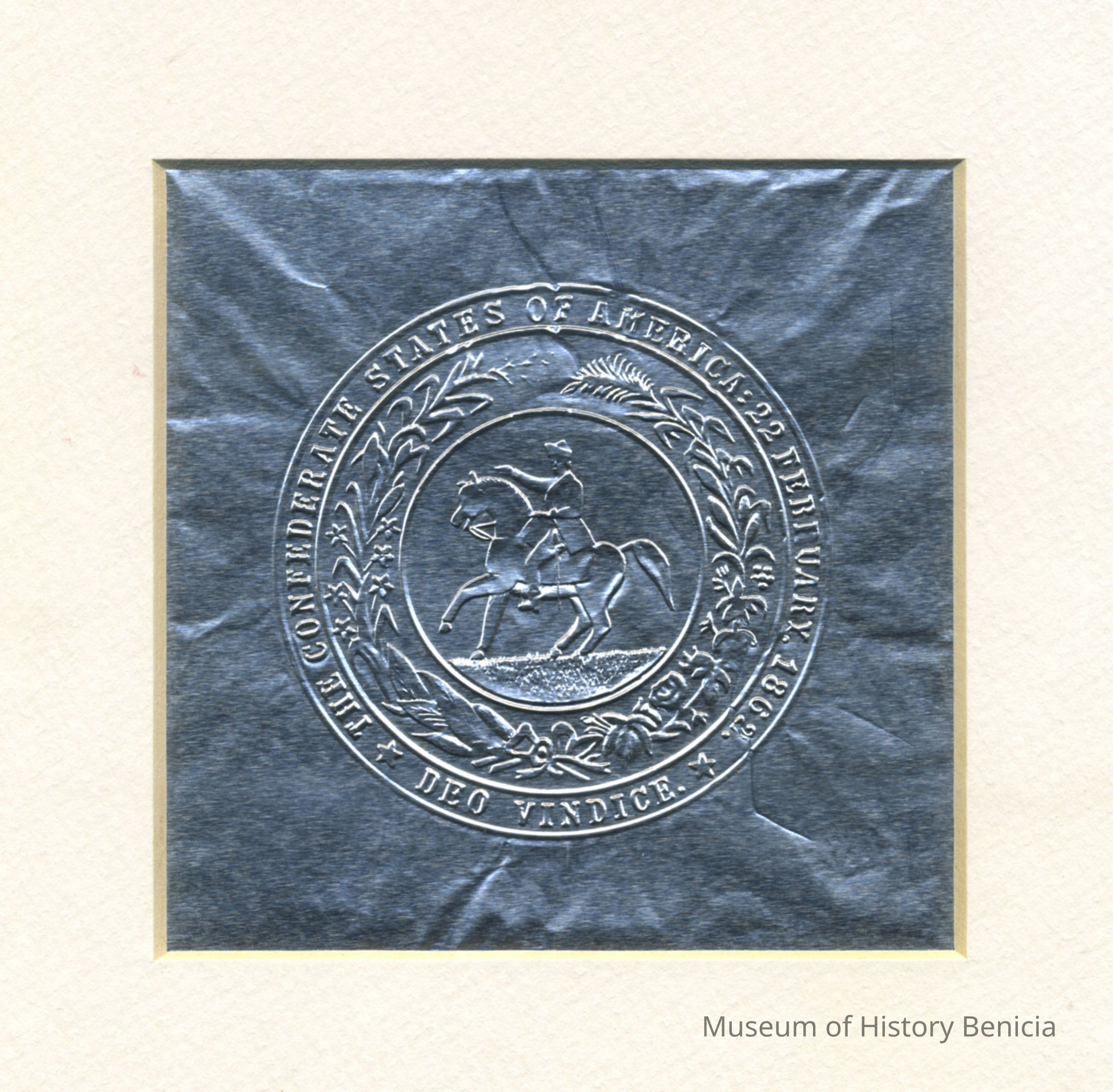 The Confederate States of America: 22 February , 1862 Deo Vindice Pony Express Seal White Cardboard background
