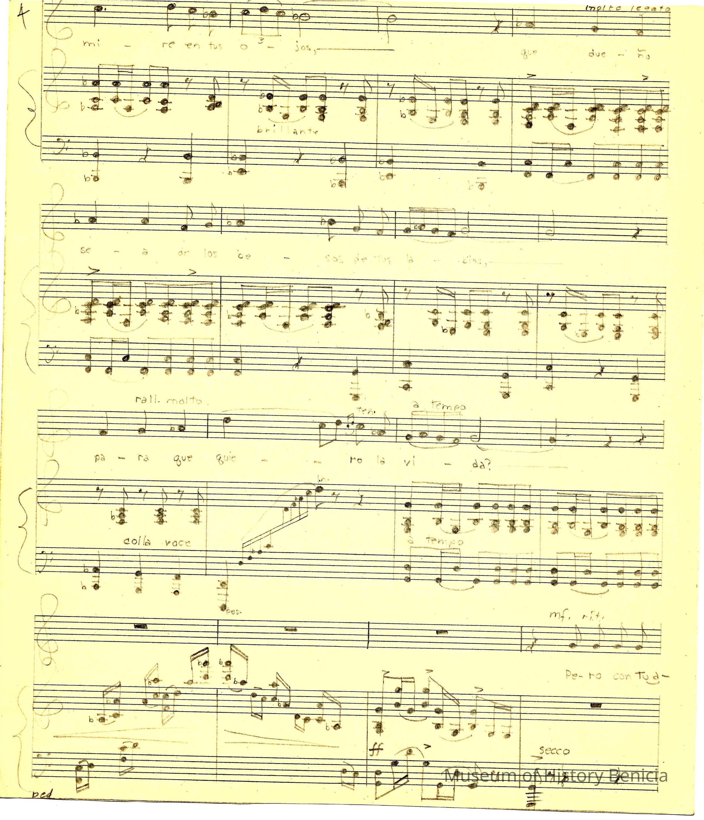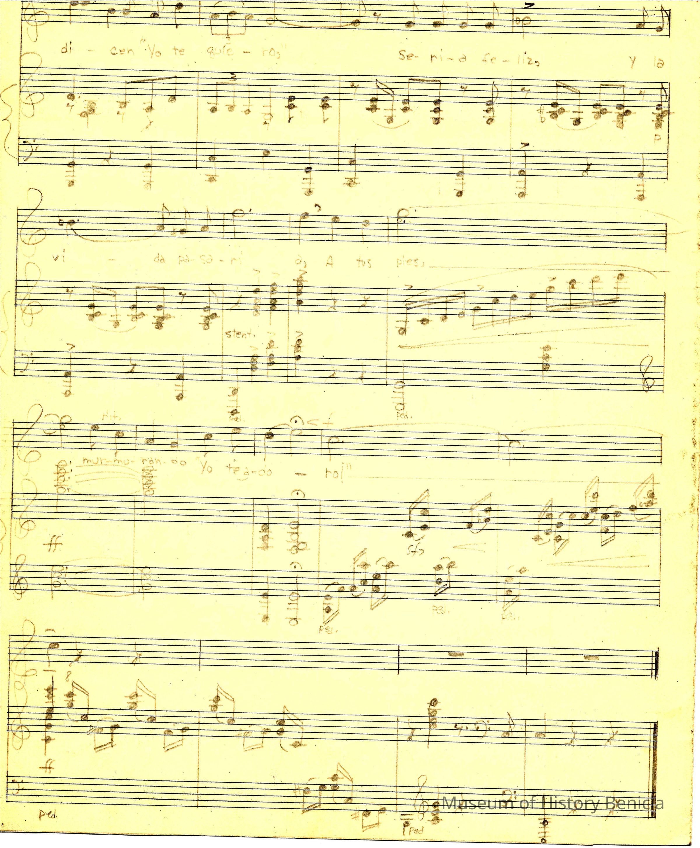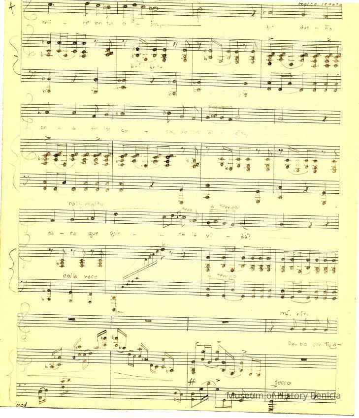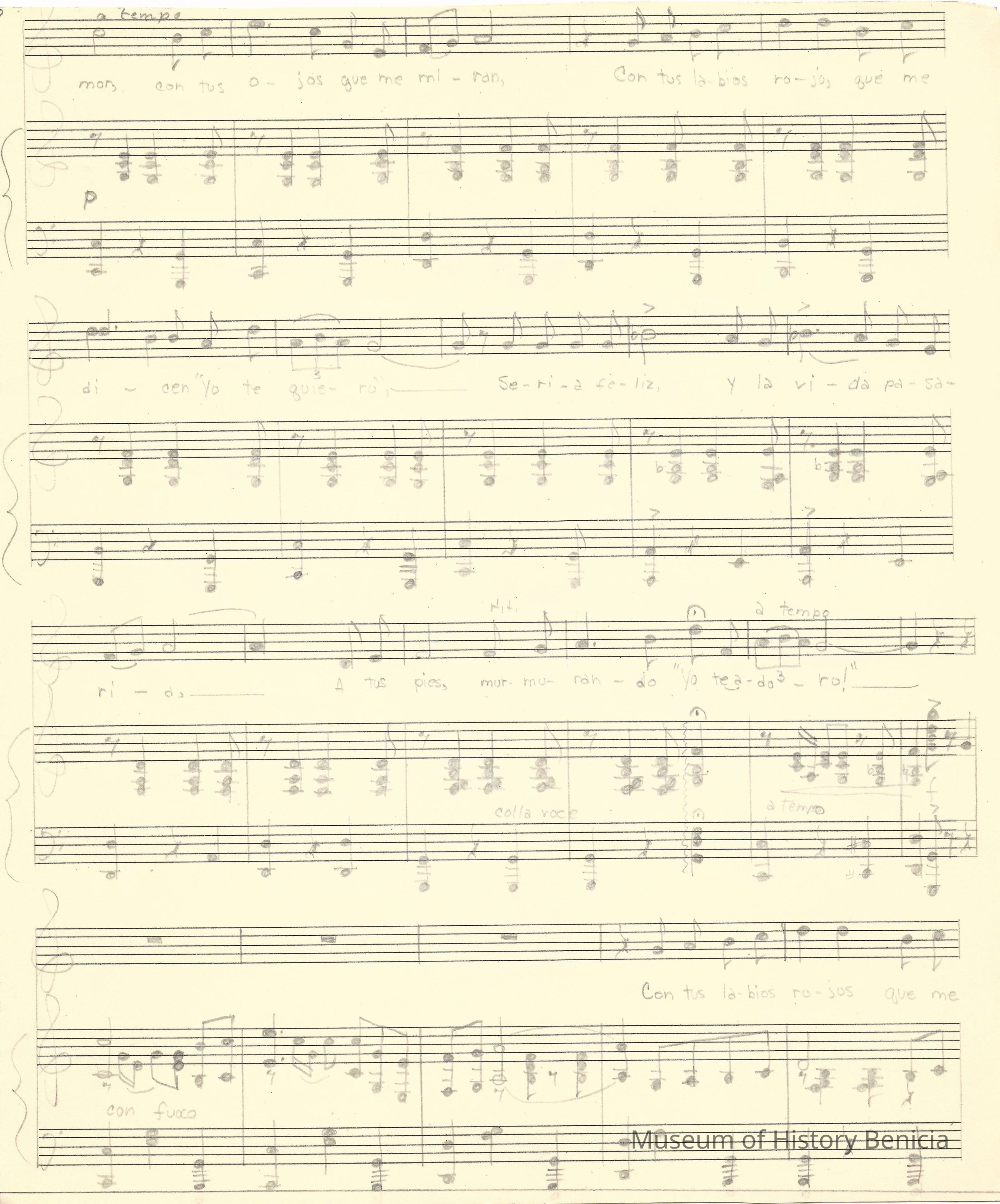 The sheet music was kept in an envelope that was owned by Violet Molfino (daughter of John Molfino early Benicia barber and photographer). She felt they were "very important"
