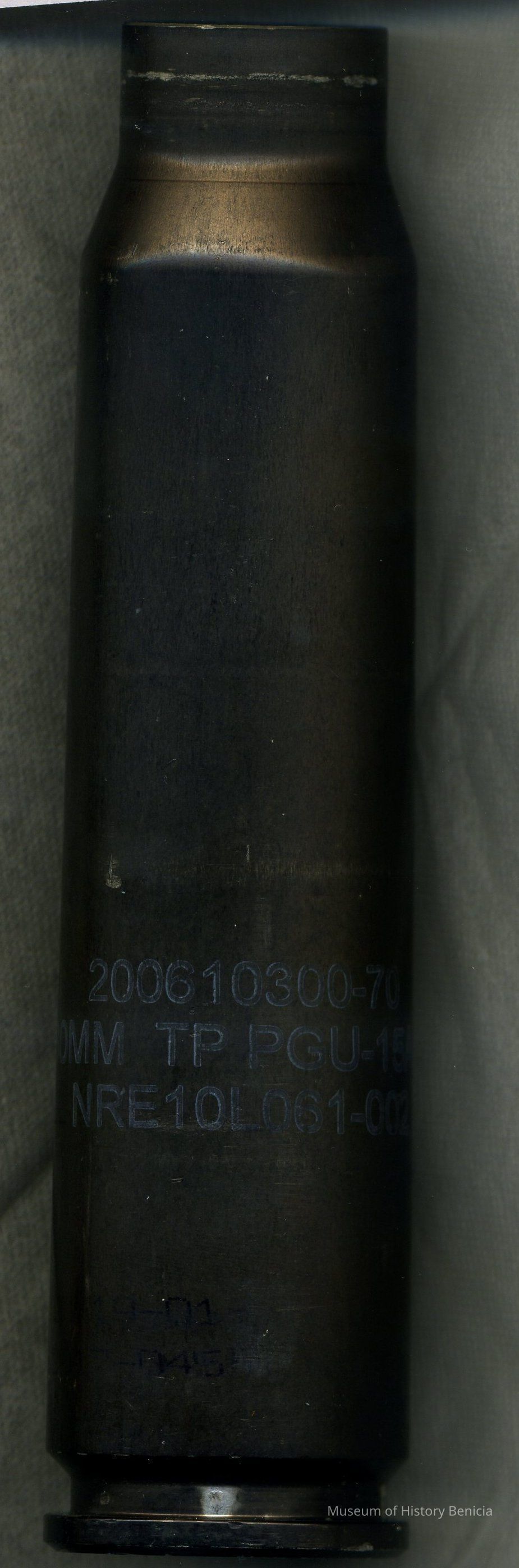 Shell casing, 30 mm; on side: "200610300-70 / 30 mm TP PGU-15 A/B / NRE10L061-002" 6-3/4" long x 1-3/4" diameter