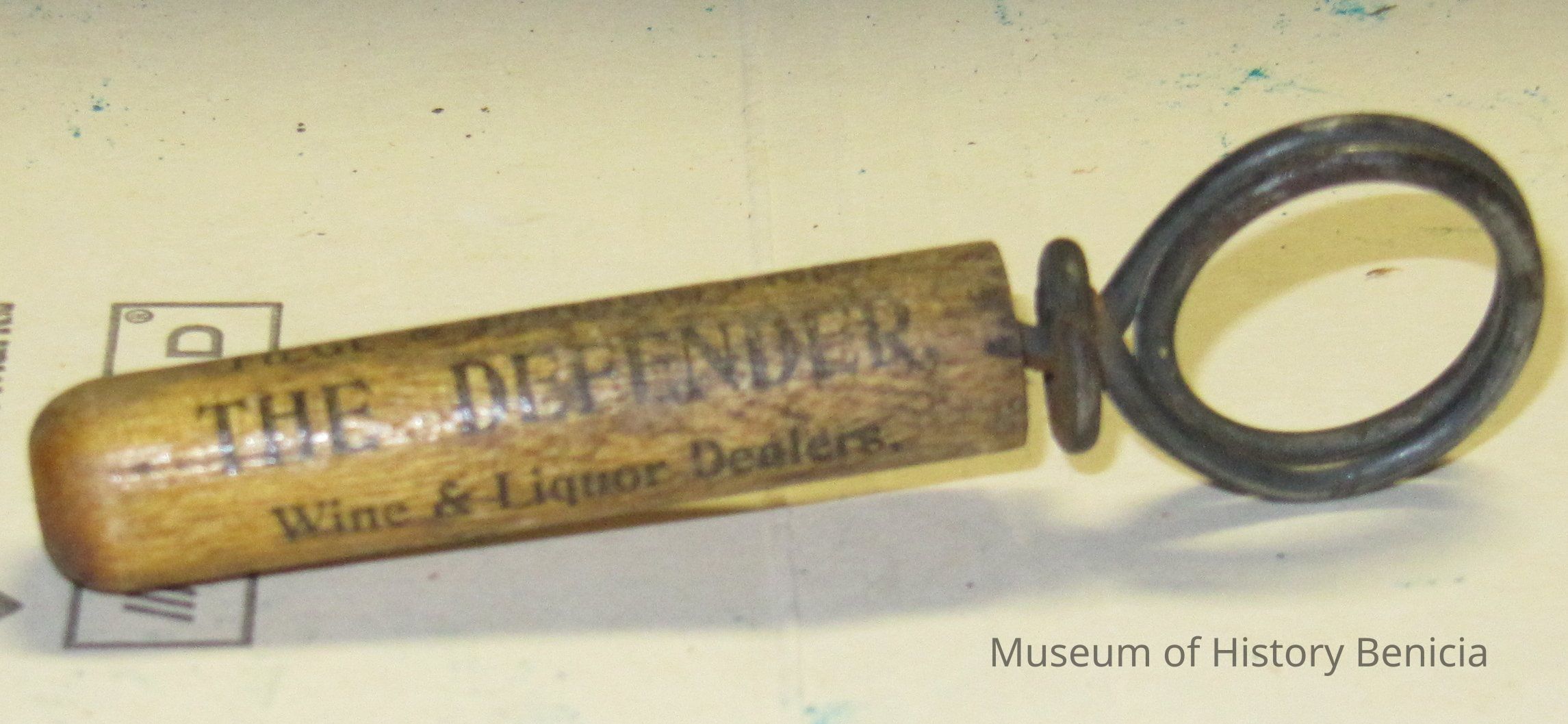 a hand held tool used to hold a 10 gauge shotgun shell casing. It was an advertizing item given away by The Defender Wine and Liquor Dealer, San Francisco patented in 1900.Collection
