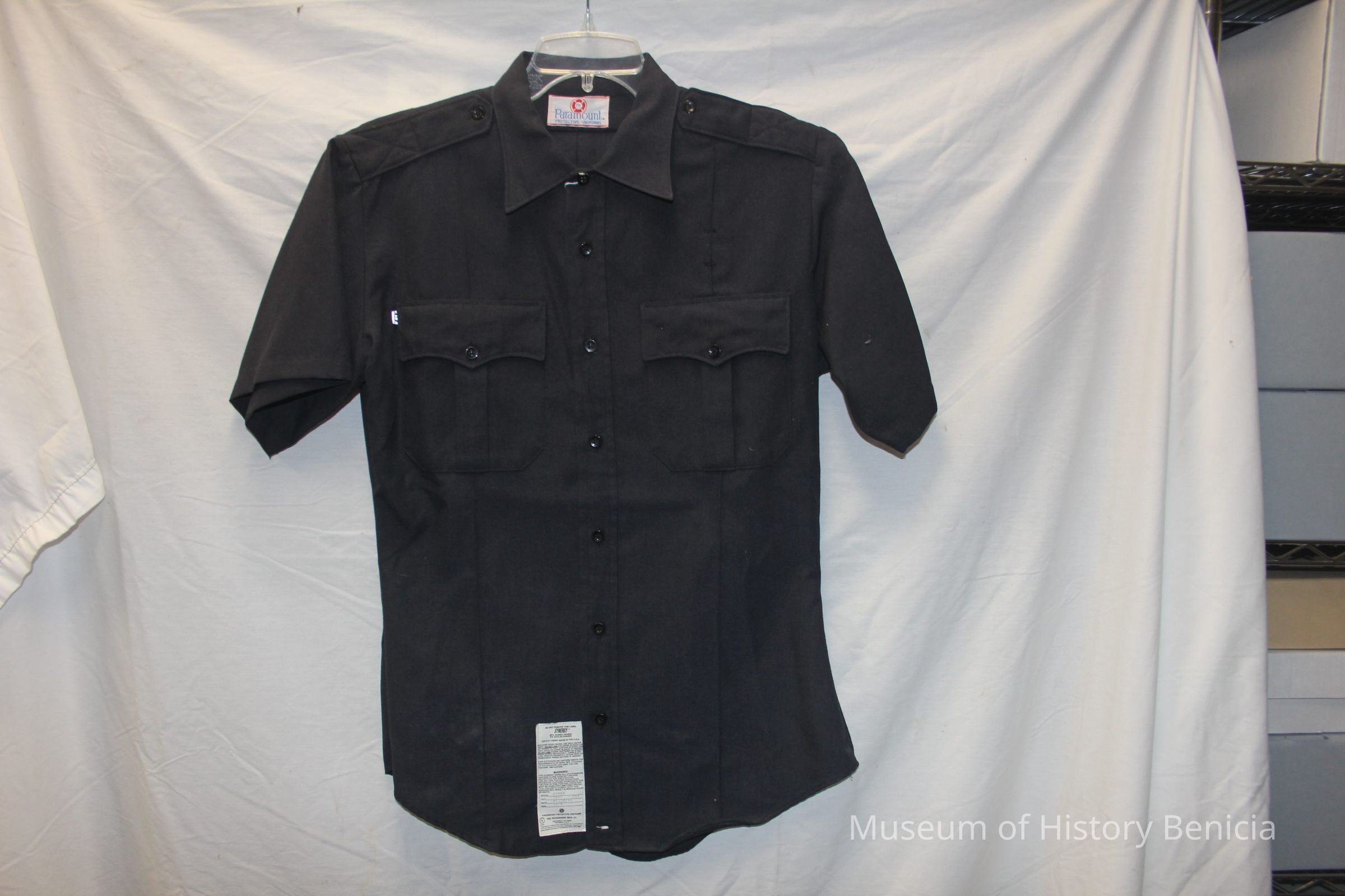 Short sleeved Nomex fire uniform shirt with front patch pockets. Dark blue, button down front, size 16.5. Sold by Paramount Protective Uniforms.