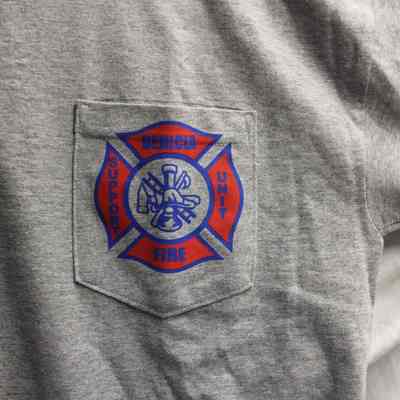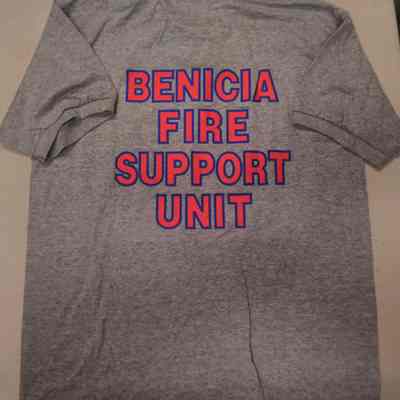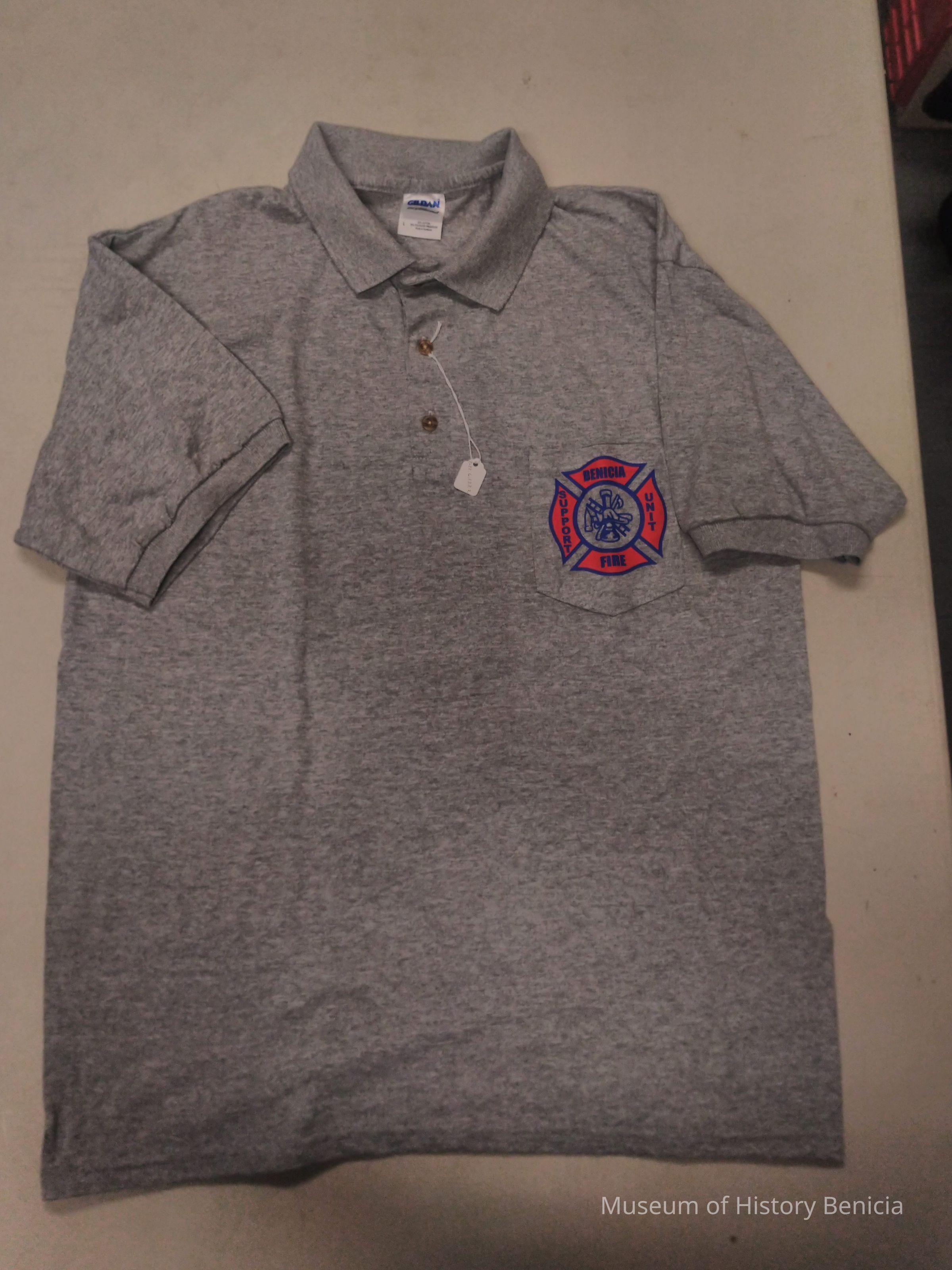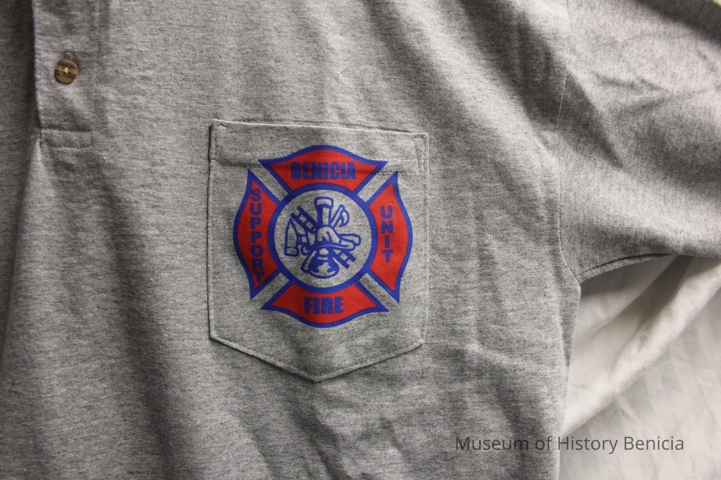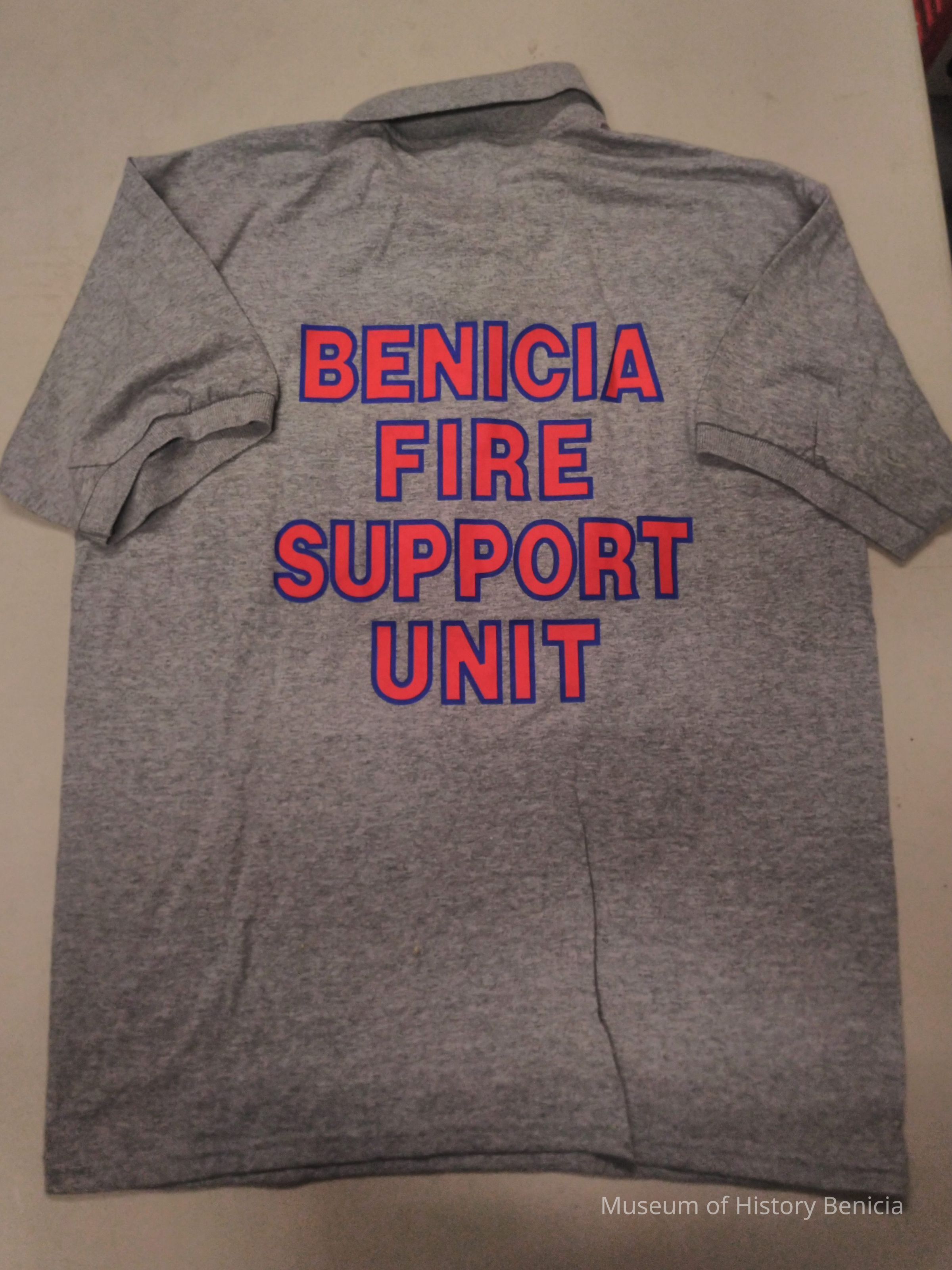 Ash Gray Benicia Volunteer Fire Dept Uniform Polo Style Shirt - Benicia Fire Support Unit logo on upper left chest and text on center back of shirt