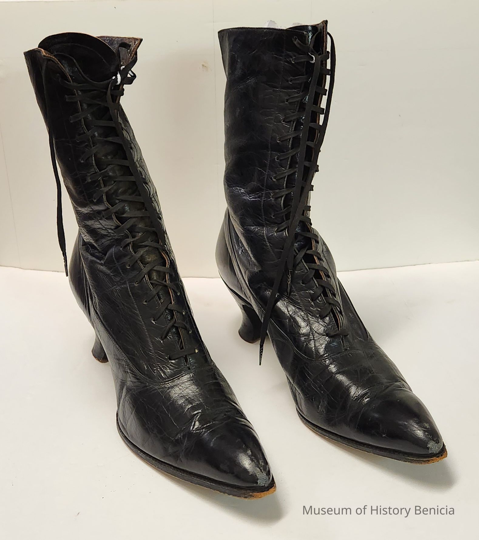 pair of ladies, high-top, lace-up, black shoes; with 2 inch heel
