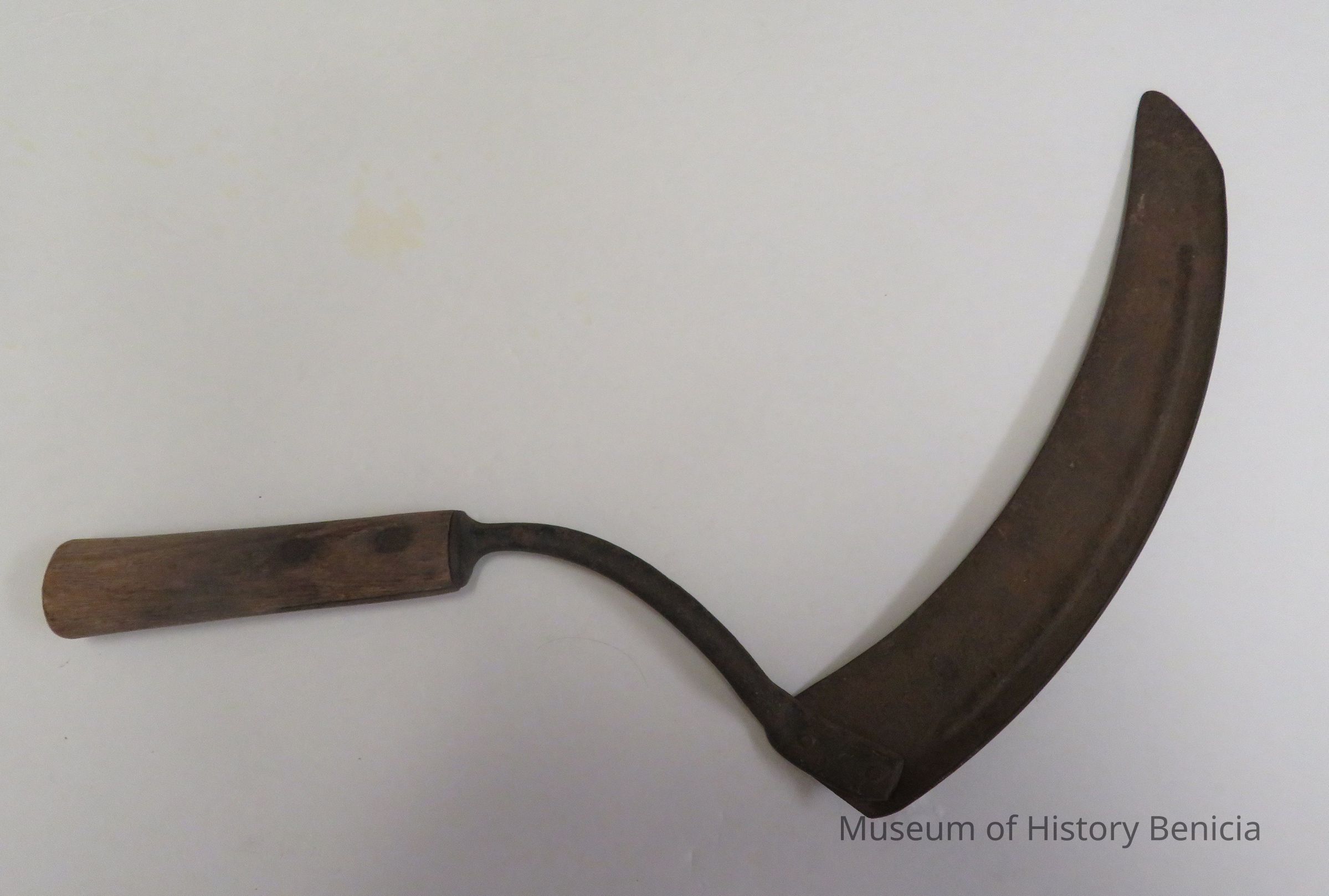 Sickle also known as a sythe; one-hand use tool; 17" length x 11" width x 1" depth