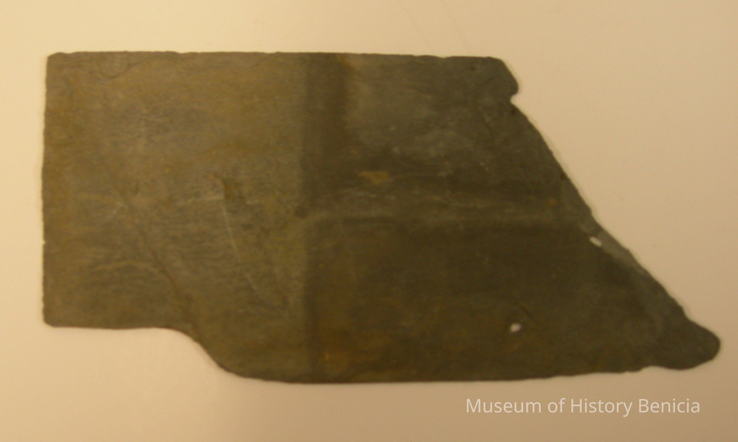 Slate Roofing, the piece is from the Powder Magazine (Bldg. 10) at the Benicia Arsenal; gray, 15" long x 7-1/4" wide