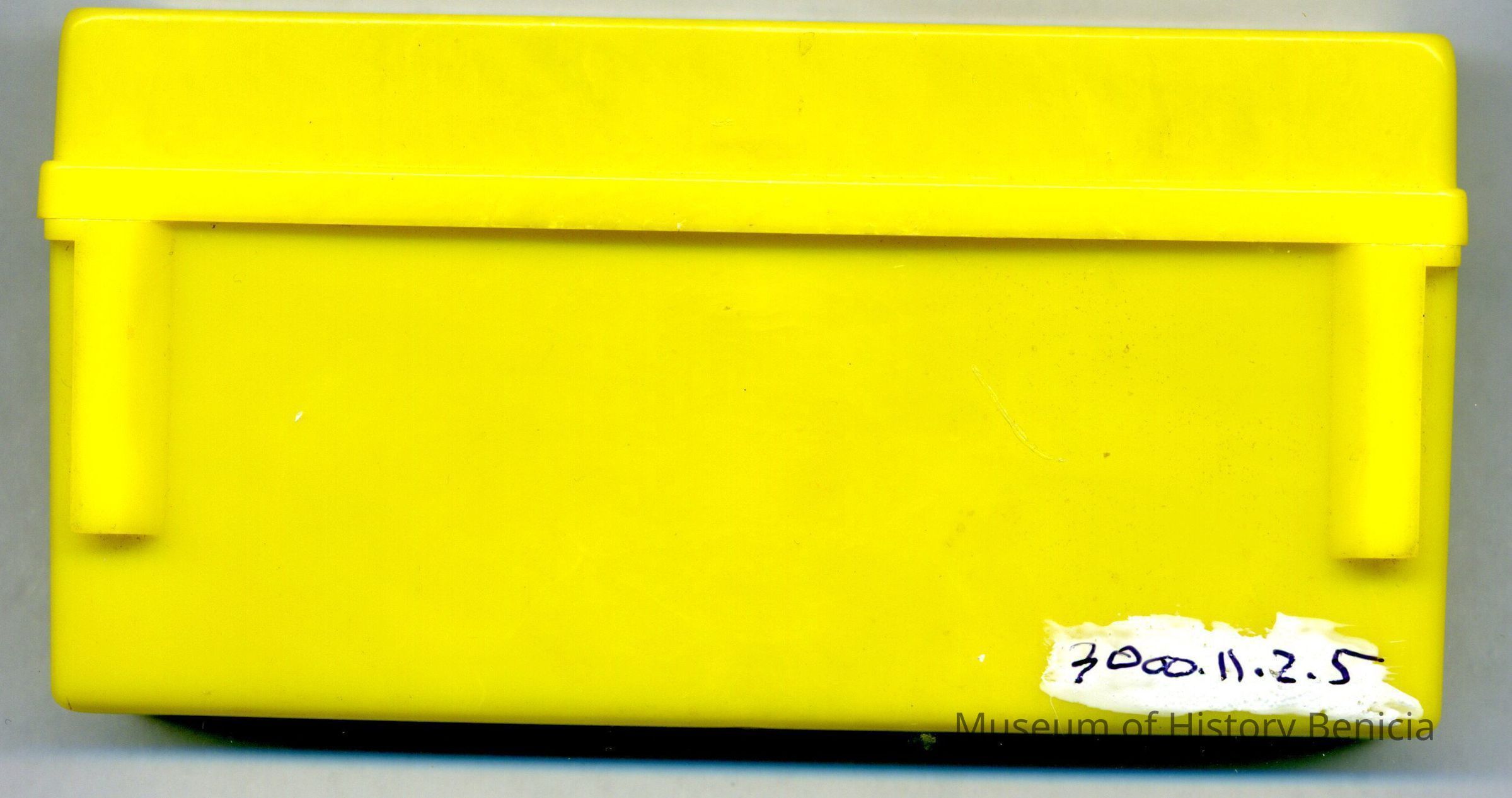 This is a plastic box made for holding 35mm slides. It is yellow.