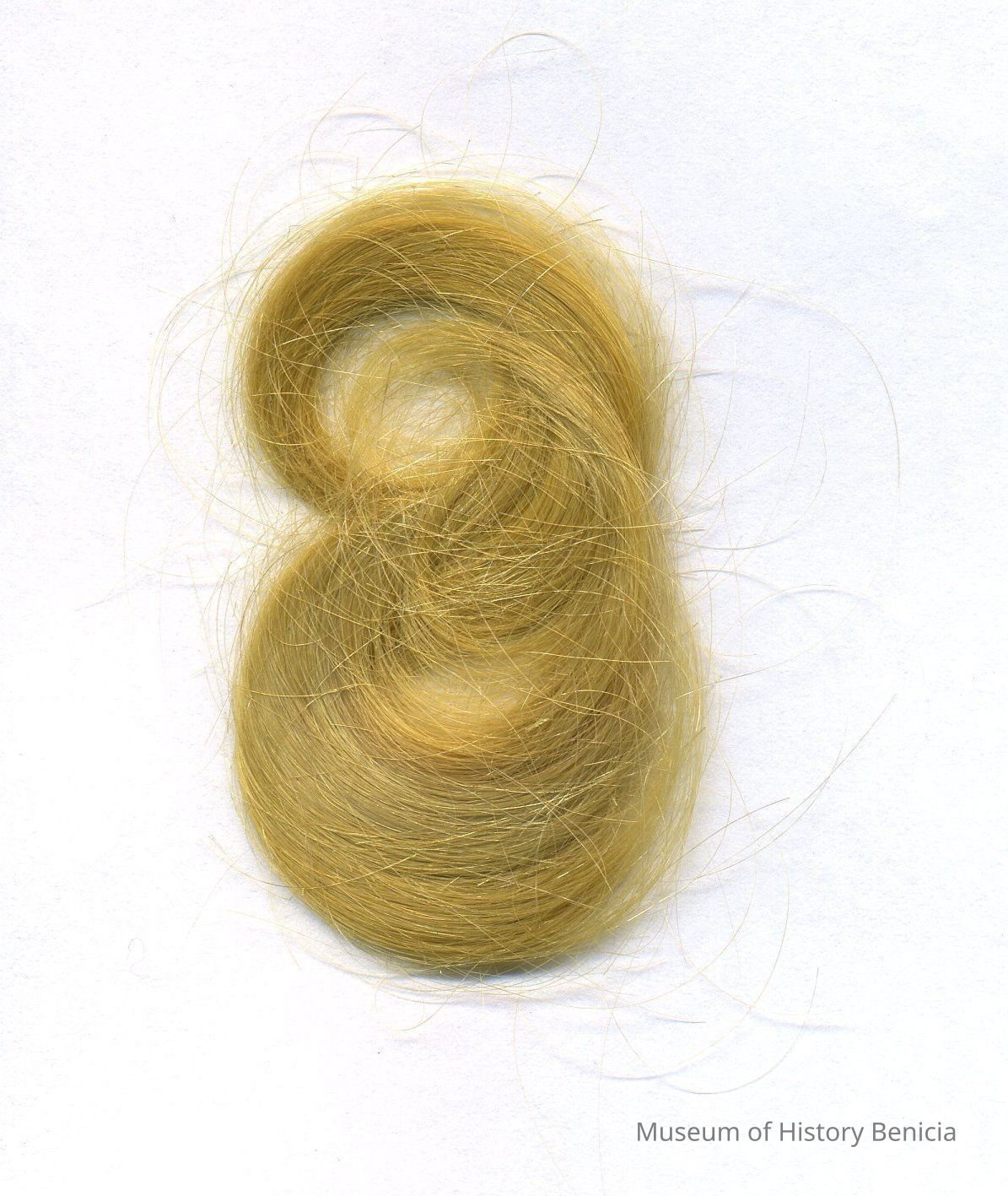 Keepsake/Souvenir - childhood curl form the head of Sheldon Rankin, blond, figure "8" shape, 2-1/2" long x 1-1/4" wide; saved by his mother Sara Stevens Rankin