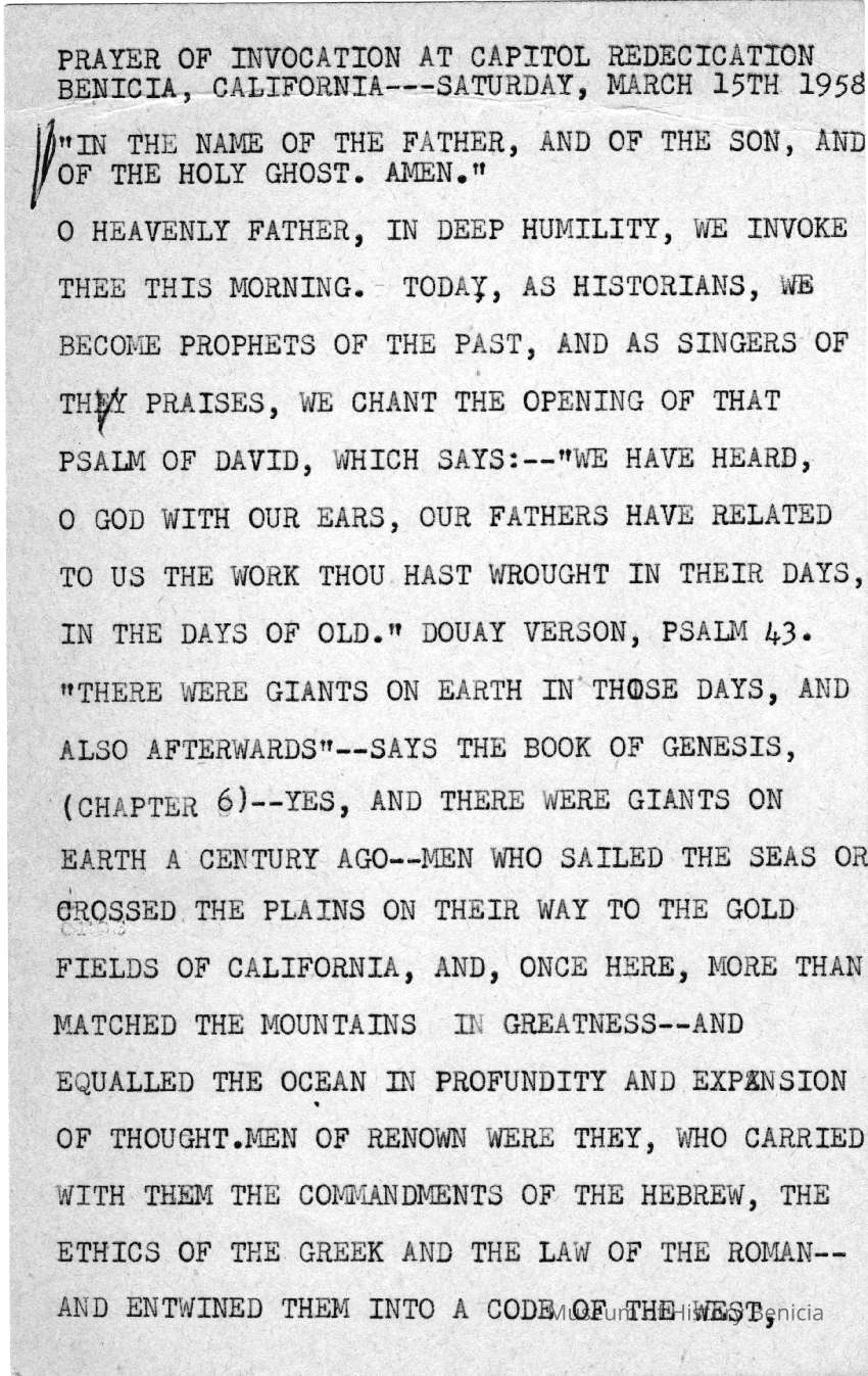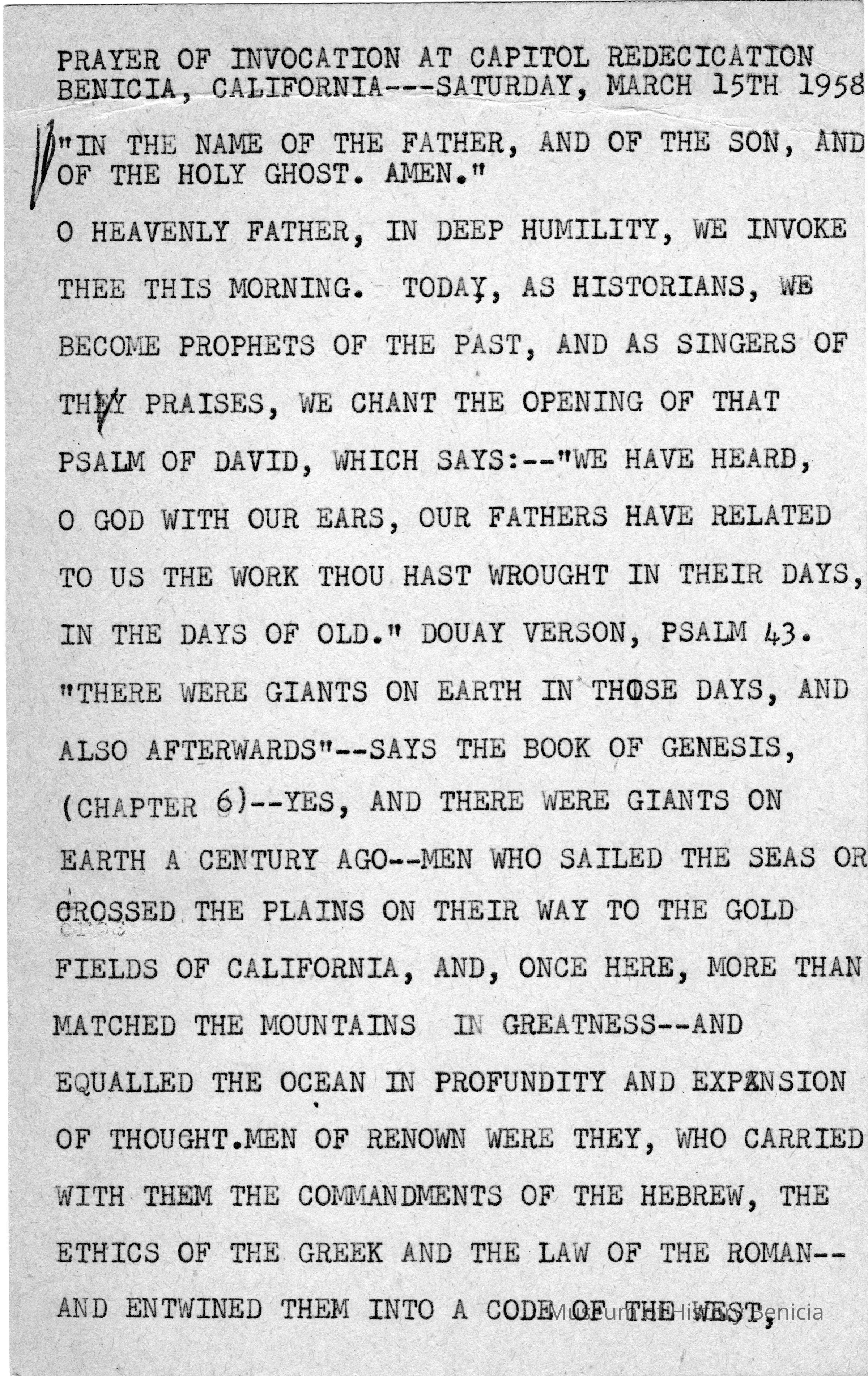 Part of a speech by John O'Grady for the 1958 rededication of the Capitol.