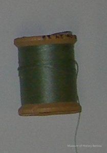 wooden spool with sage thread Brand: Coats & Clarks Mercerized sewing, boilfast, 125 yards, 15 cents