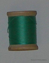 wooden spool with seafoam green thread Brand: Belding Corticelli, 125 yards, Bel-waxed mercerized cotton, fast to boiling 15 cents