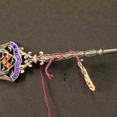 Canterbury N.Z. enameled shield. Cathederal in bowl.