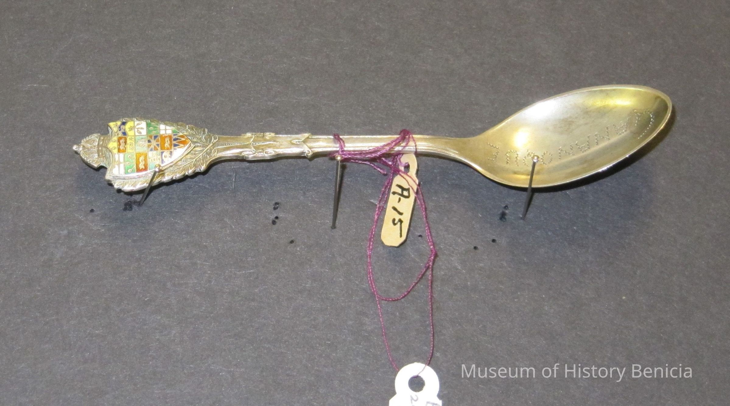 Souvenir spoon from Myrtle Mann collection. This spoon is from Gananoque. It is 3.75" long.