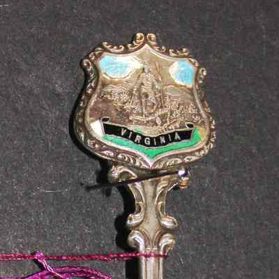 Souvenir spoon from Myrtle Mann collection. This spoon is from Virginia. It is 4.50" long.