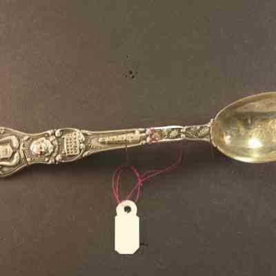 There is no number on this spoon so can't find the information that might be in the spoon journal. A hand written letter that came with the spoons says that two spoons with the initials "H.J.C." were from Auntie Harris and are from 1916/1917.Collection